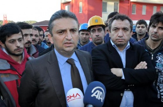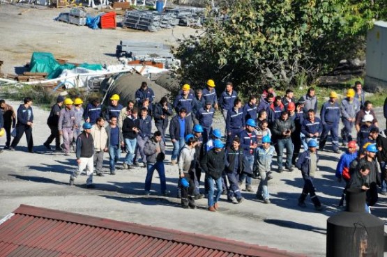 MADEN ISCILERI, IKI ASGARI UCRET UYGULAMASINI YERINE GETIRMEYEN ISVERINI PROTESTO ICIN IS BIRAKMA EYLEMI YAPTI. GMIS GENEL BASKANI EYUP ALABAS GAZETECILERE ACIKLAMA YAPTI. FOTO-AYHAN ACAR-BARTIN-DHA