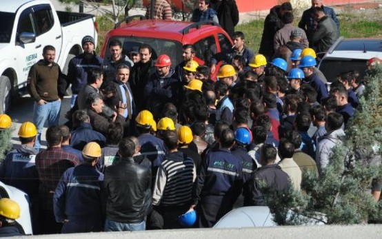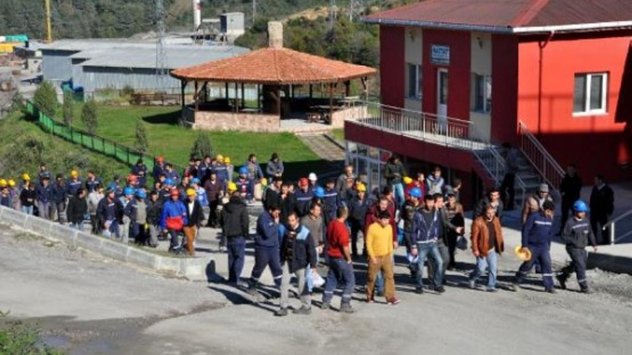 MADEN ISCILERI, IKI ASGARI UCRET UYGULAMASINI YERINE GETIRMEYEN ISVERINI PROTESTO ICIN IS BIRAKMA EYLEMI YAPTI. FOTO-AYHAN ACAR-BARTIN-DHA