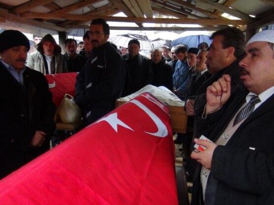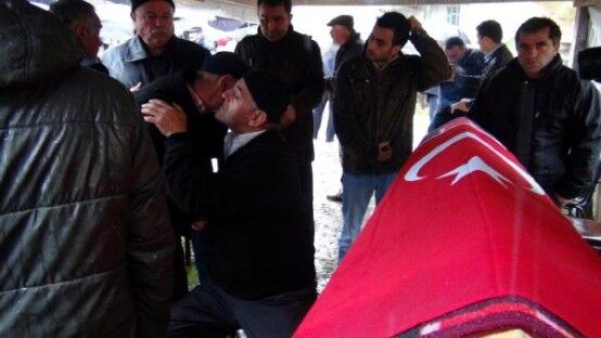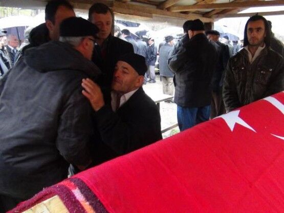 ZONGULDAK TA KACAK MADEN OCAGINDA METAN GAZI ZEHIRLENMESI SONUCU YASAMLARINI KAYBEDEN 3 MADEN ISCISI, BARTIN IN AMASRA ILCESI NDE TOPRAGA VERILDI. ISMAIL ALTUN (SANDALYEDE OTURAN KISI) OGLUNUN CENAZESININ BASINDA TAZIYELERI KABUL ETTI. FOTO-AYHAN ACAR-BARTIN-DHA