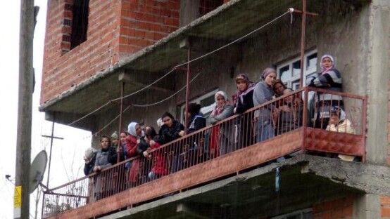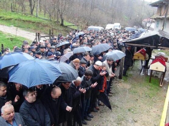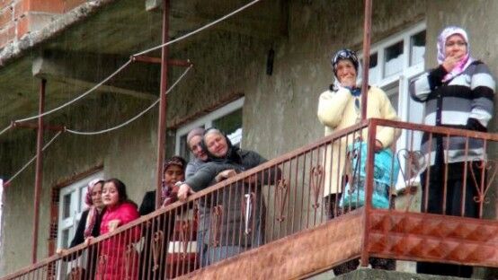ZONGULDAK TA KACAK MADEN OCAGINDA METAN GAZI ZEHIRLENMESI SONUCU YASAMLARINI KAYBEDEN 3 MADEN ISCISI, BARTIN IN AMASRA ILCESINDE TOPRAGA VERILDI. BALKONDA CENAZE NAMAZINI IZLEYEN KADINLAR GOZYASLARINA BOGULDULAR. FOTO-AYHAN ACAR-BARTIN-DHA