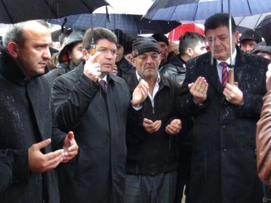 ZONGULDAK TA KACAK MADEN OCAGINDA METAN GAZI ZEHIRLENMESI SONUCU YASAMLARINI KAYBEDEN 3 MADEN ISCISI, BARTIN IN AMASRA ILCESINDE TOPRAGA VERILDI. ISMAIL ALTUN A (ORTADA) AK PARTI BARTIN MILLETVEKILI YILMAZ TUNC (SOLDA GOZLUKLU) ILE CHP BARTIN MILLETVEKILI RIZA YALCINKAYA (KIRMIZI KRAVATLI) TESKIN ETTI. FOTO-AYHAN ACAR-BARTIN-DHA