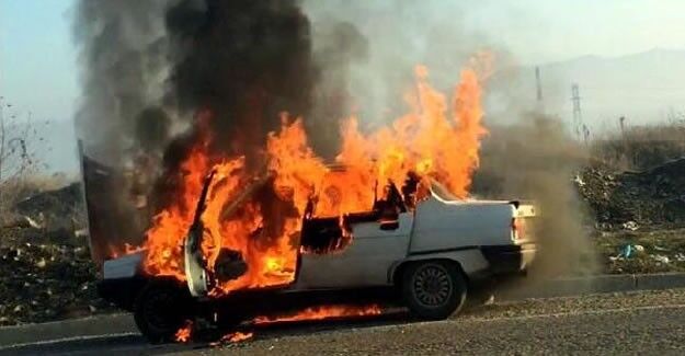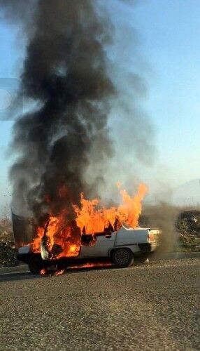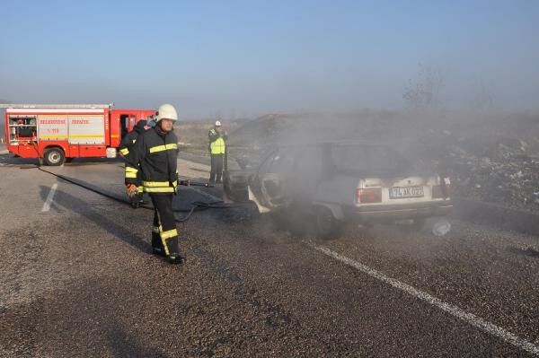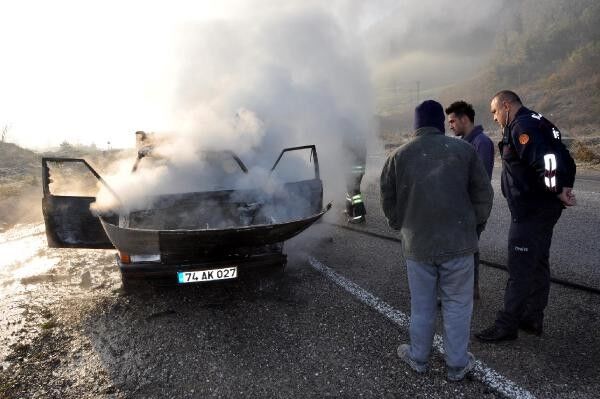 SURUCU SADETTIN KACAR, OTOMOBILINDE CIKAN YANGINI CEP TELEFONUYLA GORUNTULEDI. FOTO-BARTIN-DHA