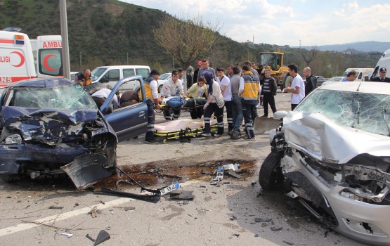 KARABÜK-SAFRANBOLU KARAYOLUNDA MEYDANA GELEN VE 4 ARACIN KARIŞTIĞI KAZADA 5 KİŞİ YARALANDI. (YASİN ERDEM/KARABÜK-İHA)