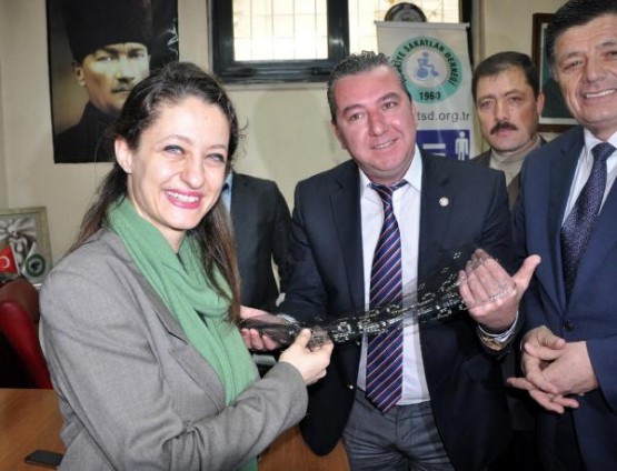 CHP GENEL BASKAN YARDIMCISI SAFAK PAVEY, BARTIN'DA TURKIYE SAKATLAR DERNEGI SUBESINI ZIYARET ETTI. PAVEY'E BURADA BARTIN TEL KIRMASI HEDIYE EDILDI. FOTO-AYHAN ACAR-BARTIN-DHA