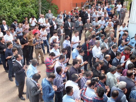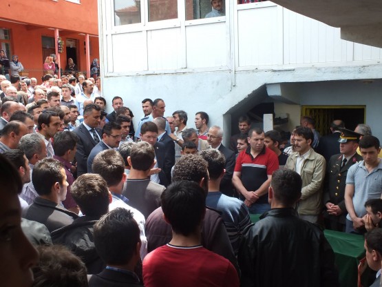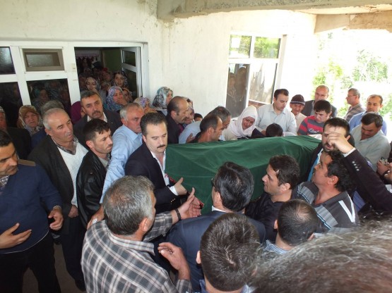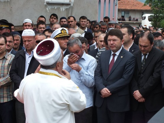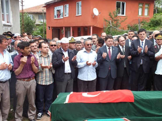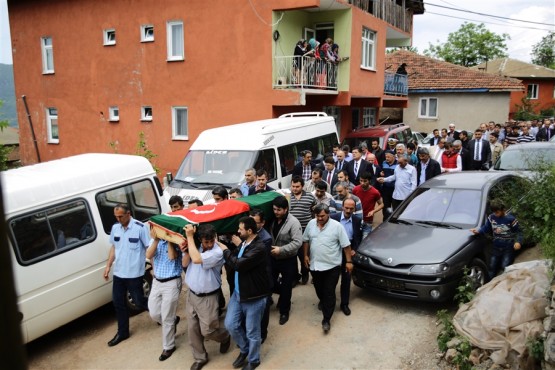 MITHAT OZDIRIK'IN CENAZESI BARTIN'DA TOPRAGA VERILDI. ANNE ZELIHA OZDIRIK (SAGDA GRI HIRKALI), OGLUNUN TABUTU BASINDA GOZYASI DOKTU. FOTO-AYHAN ACAR-BARTIN-DHA