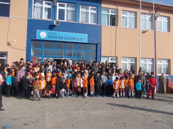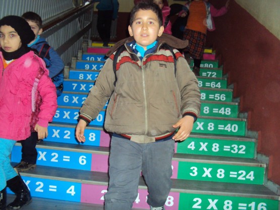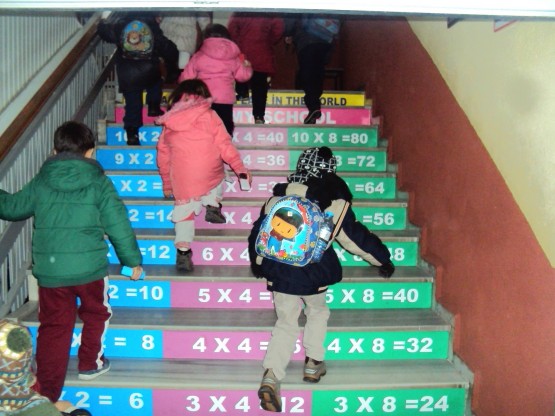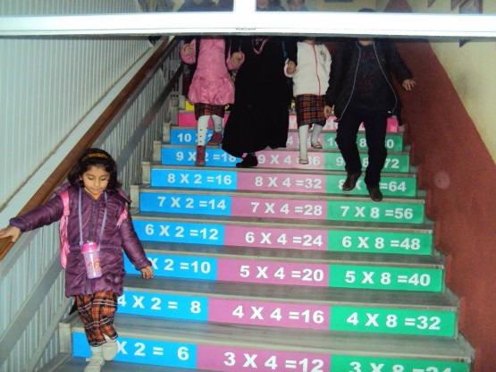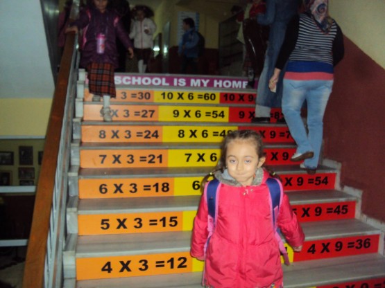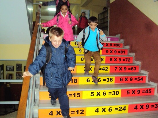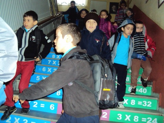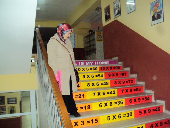 Bartın Merkeze bağlı Serdar Köyü İlkokulu yöneticileri okul merdivenlerine ve zeminine yapıştırdığı bilgilendirici afişlerle öğretime farklı bir boyut kazandırıyor.