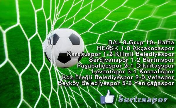 Bartınspor 2015-2016 sezonu Bölgesel Amatör Lig 8.Grup'ta onuncu hafta toplu sonuçlar