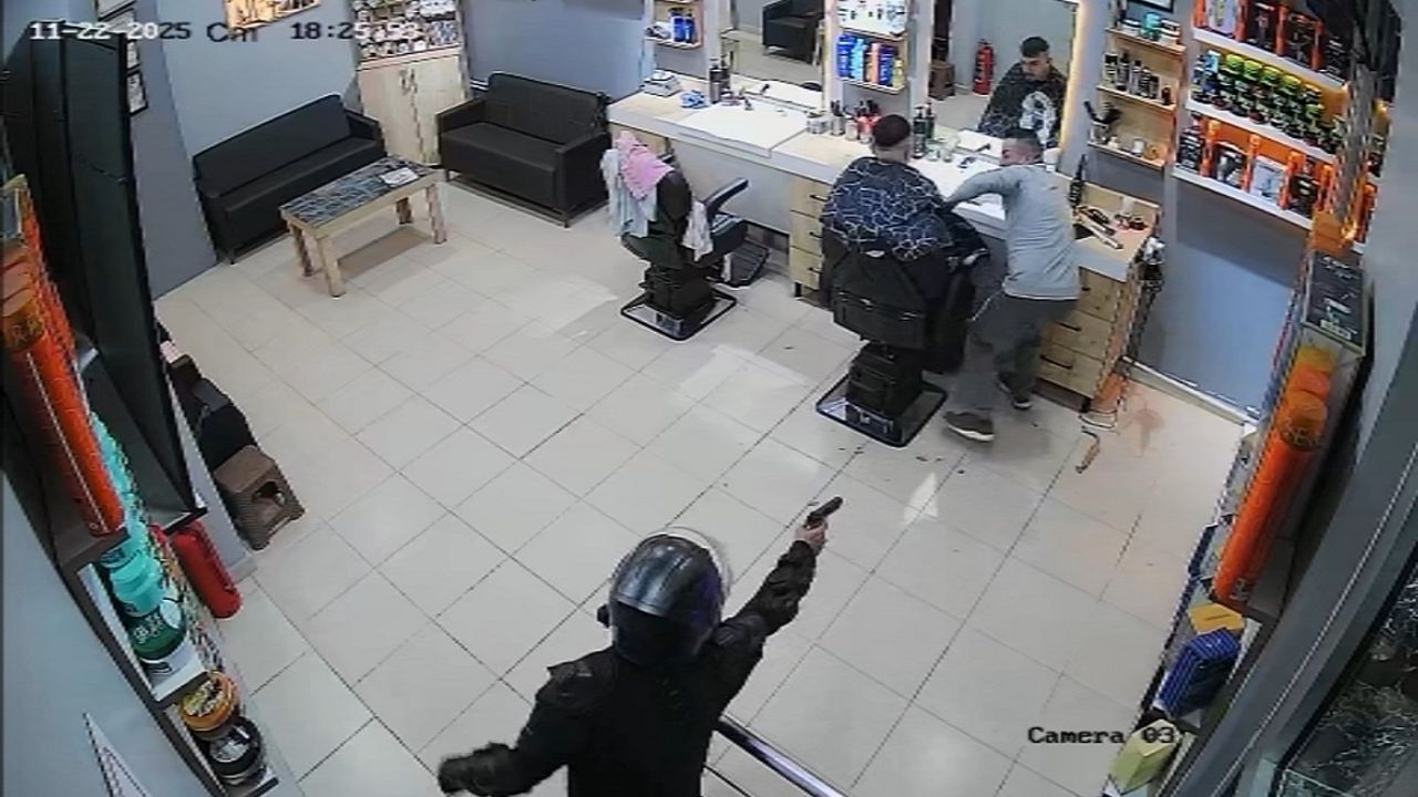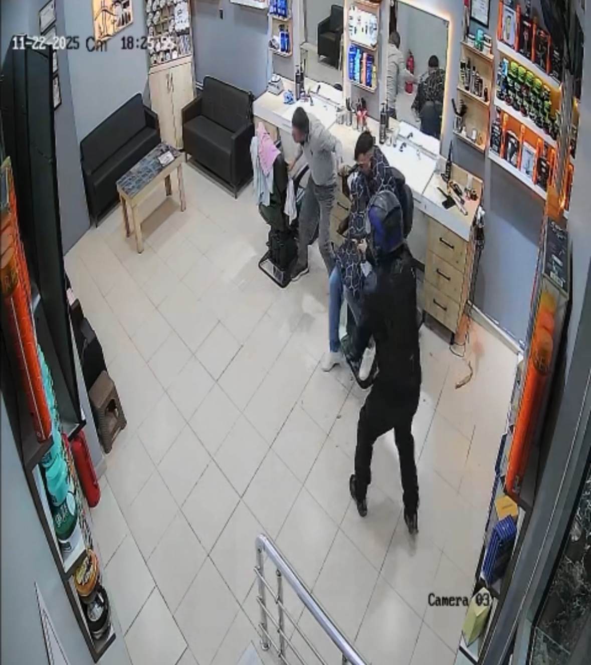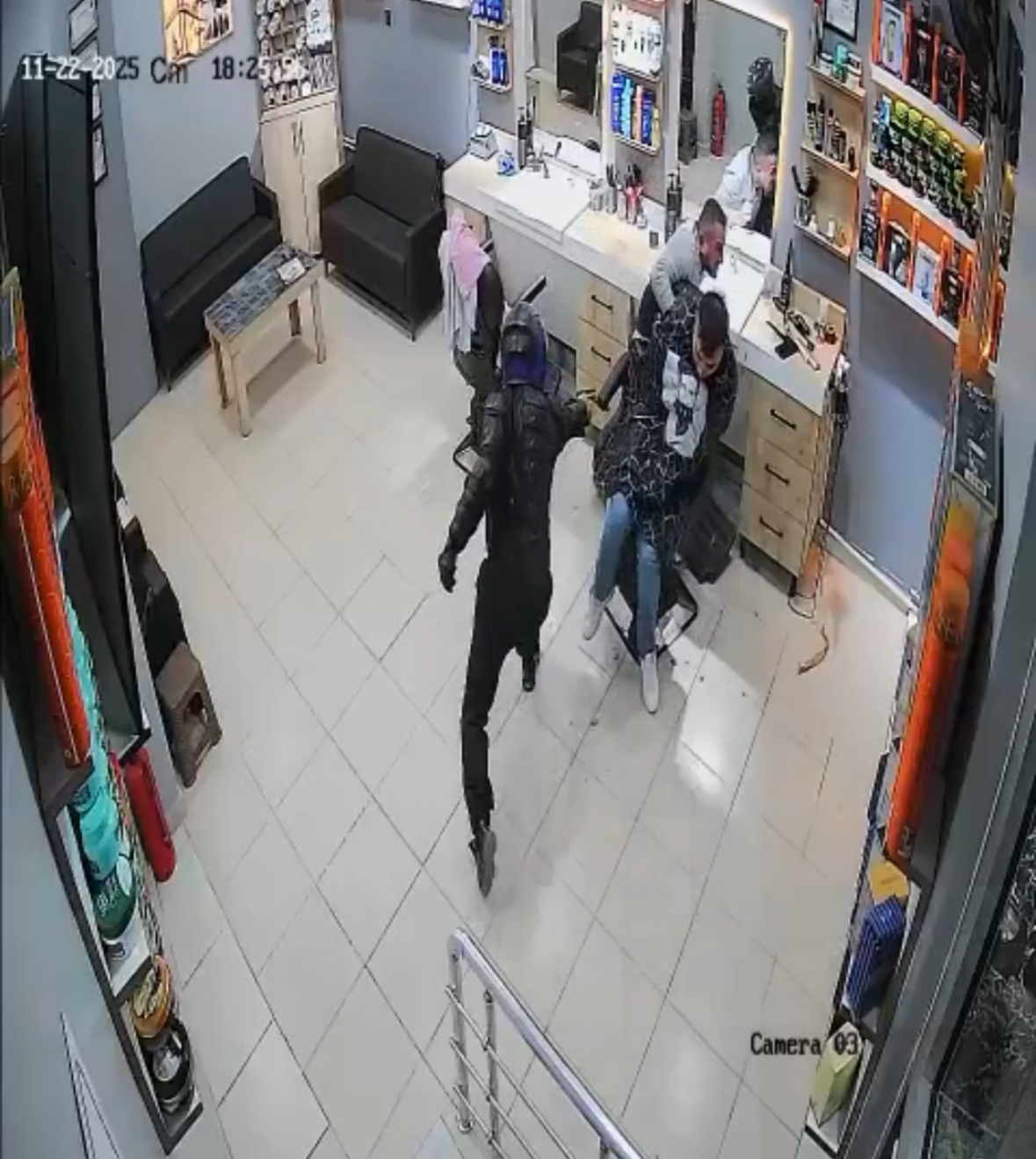 SİNOP'un Ayancık ilçesinde dükkana giren kasklı kişi, tabanca ile berbere peş peşe ateş açtı. Saldırı ile berberin, müşterisinin arkasına sığındığı anlar kameraya yansıdı.