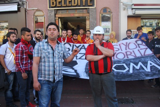 Manisa’nın Soma ilçesinde meydana gelen maden kazasında hayatını kaybeden maden işçileri için Bartın taraftar grupları Cuma Günü yürüdüler. Kemer Meydanı’nda toplanan Bartın taraftar grupları, Hükümet Caddesine kadar sloganlar atarak Soma için yürüyüş yapan gruplar, eski belediye binası önünde basın açıklaması gerçekleştirdi. Foto: Muhammet Bayraktar