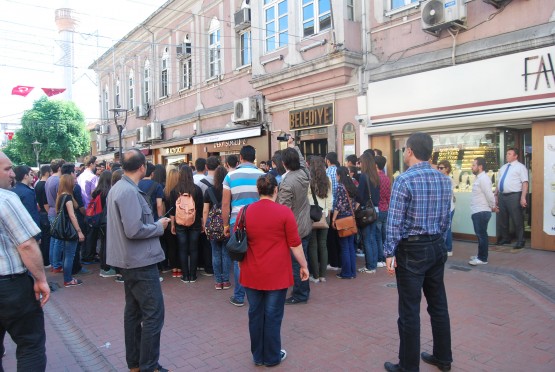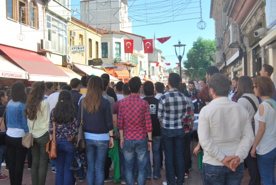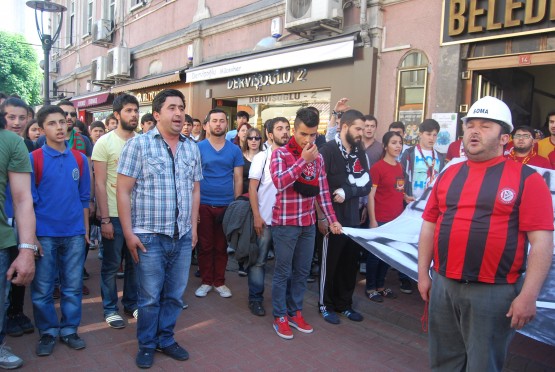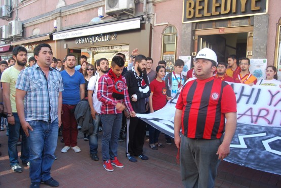 Manisa’nın Soma ilçesinde meydana gelen maden kazasında hayatını kaybeden maden işçileri için Bartın taraftar grupları önce Kemer meydanın toplandılar. Foto: Muhammet Bayraktar