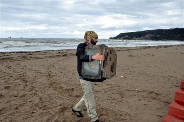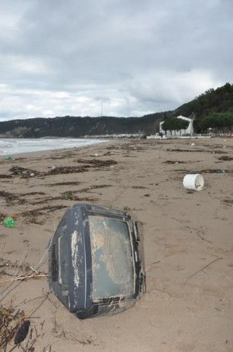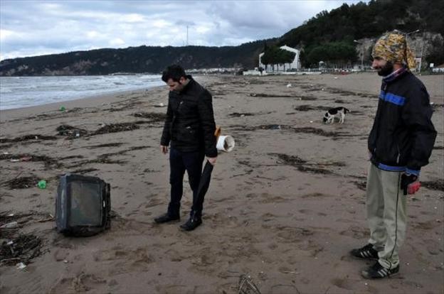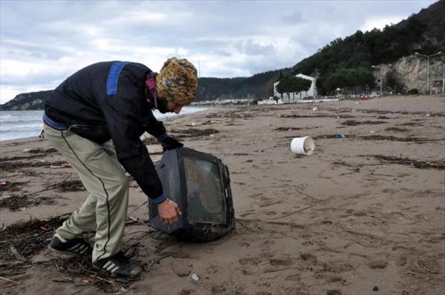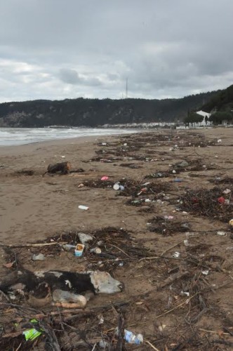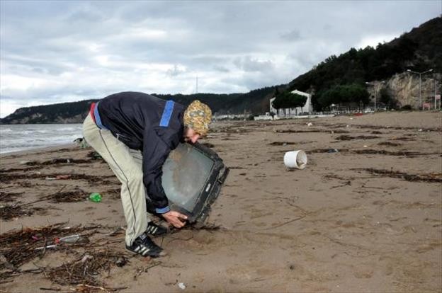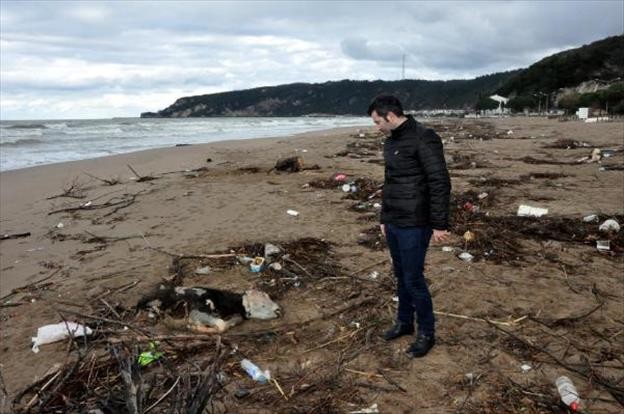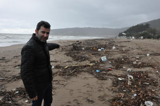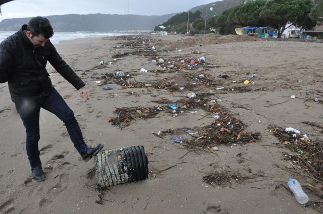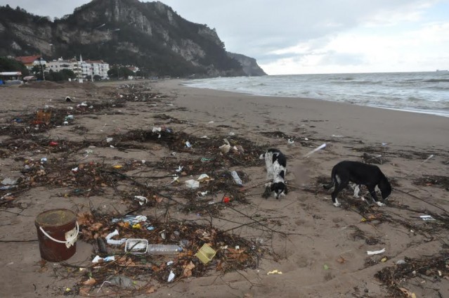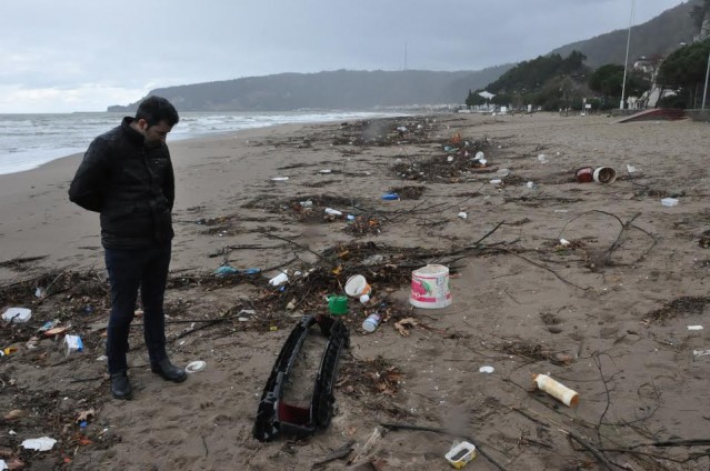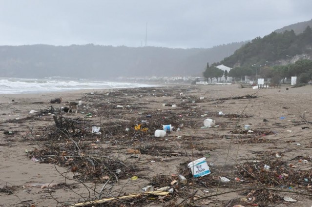 BARTIN'ın tatil beldesi İnkum'da, dalgaların etkisiyle sahile vuran atıklar kirliliğe yol açtı. Ayhan ACAR/BARTIN, (DHA)