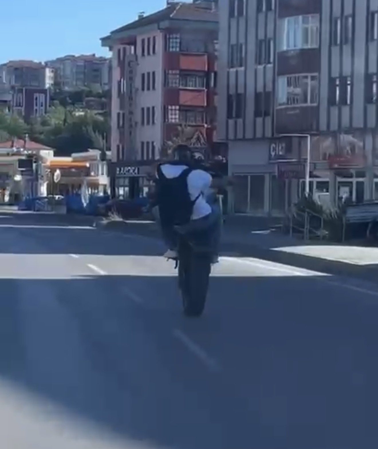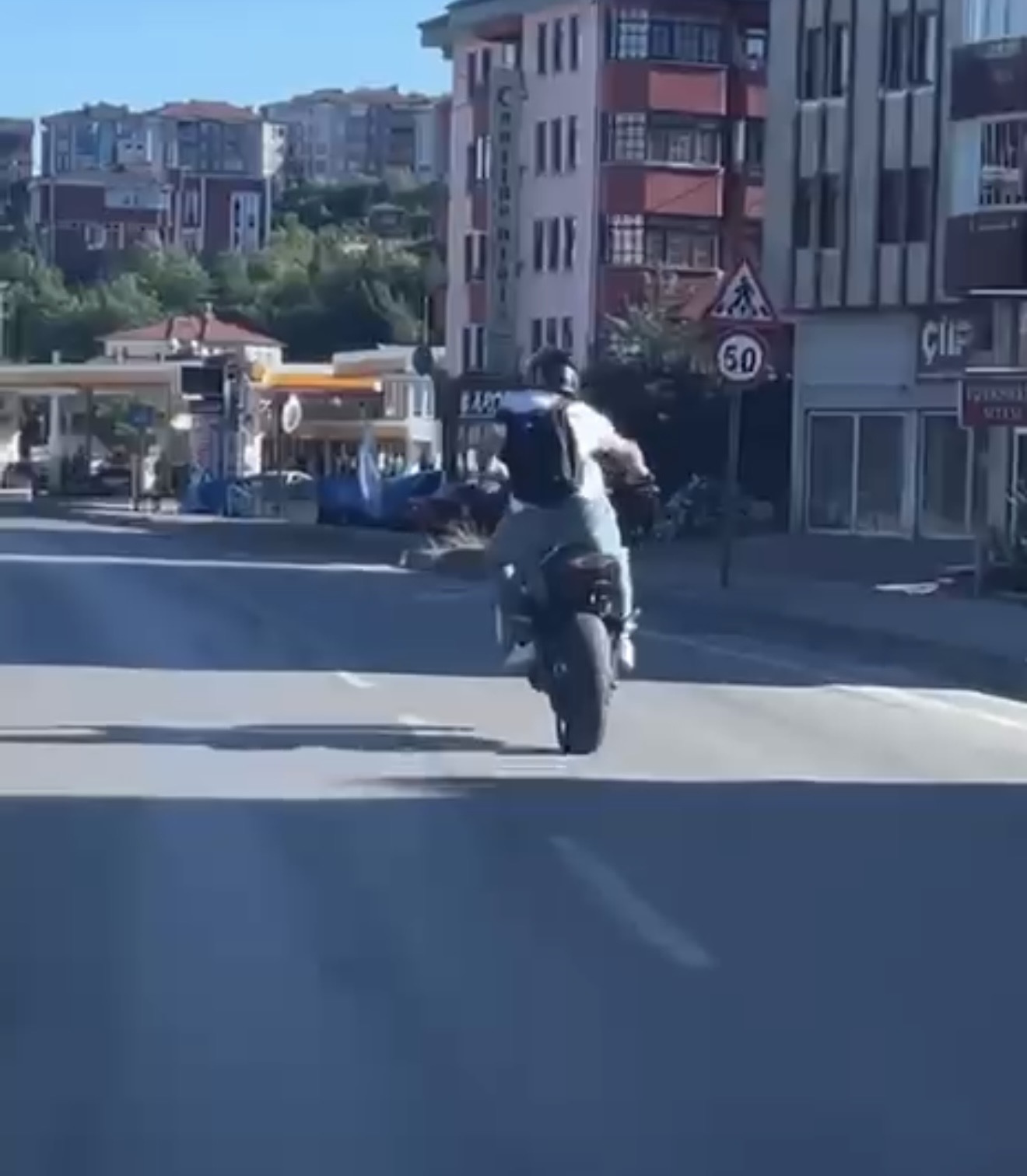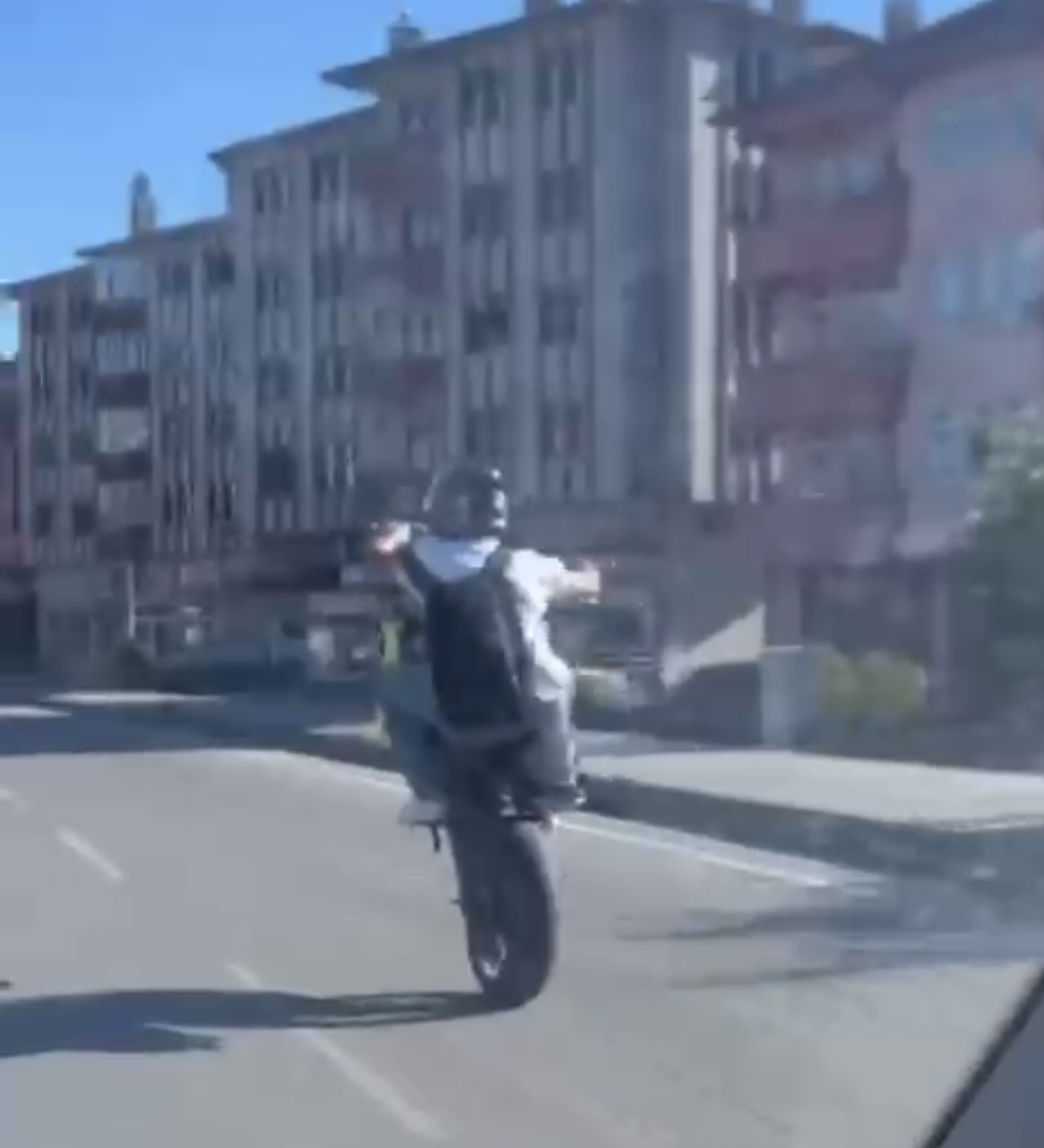 Gölbuca Kavşağı ile Valilik Konutu Kavşağı arasında dün akşam saatlerinde bir sürücü, kırmızı ışığın yeşile dönmesi ile motosikletinin ön tekerini kaldırarak ilerledi. Hızla ilerleyen sürücünün trafiği tehlikeye düşürdüğü anlar, diğer sürücüler tarafından cep telefonuyla görüntülendi. Polis, motosiklet sürücüsünün kimliğini tespit etmek için çalışma başlattı.