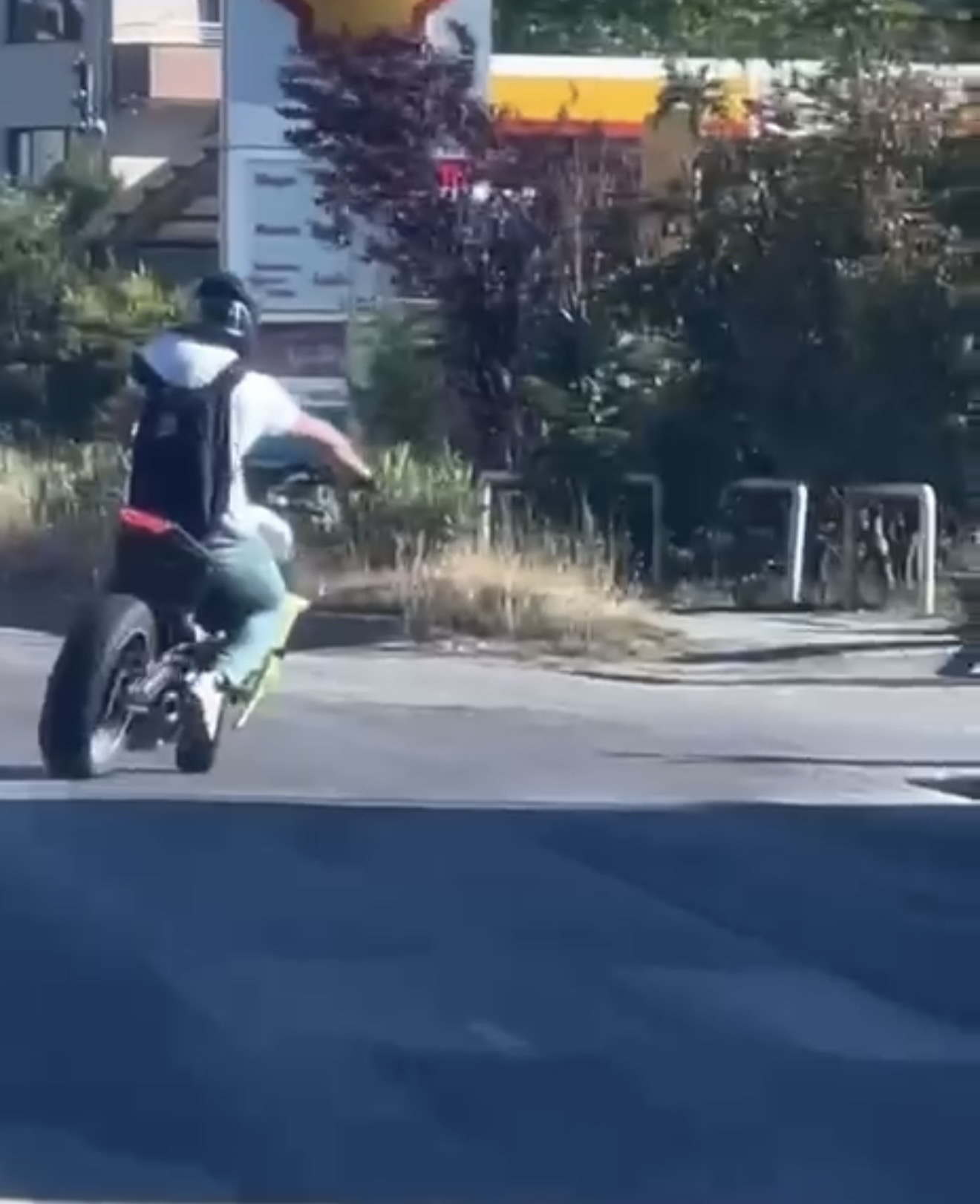 Hızla ilerleyen sürücünün trafiği tehlikeye düşürdüğü anlar, diğer sürücüler tarafından cep telefonuyla görüntülendi. Polis, motosiklet sürücüsünün kimliğini tespit etmek için çalışma başlattı.