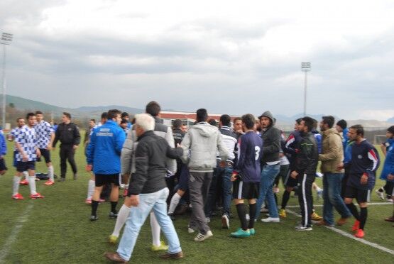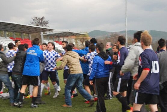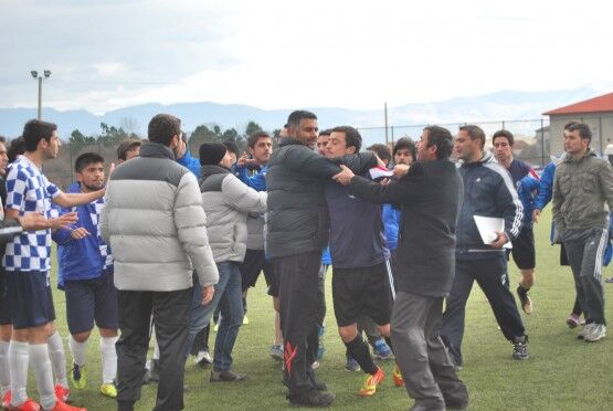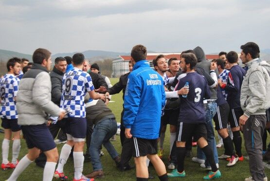 Bartın’da Bartın Üniversitesi ile Bolu izzet Baysal Üniversitesi arasında oynanan Üniversiteler Arası 2.Lig maçı bitiminde iki takım futbolcuları, tekme tokat birbirine girdi. Polis ve Gençlik Hizmetleri ve Spor İl Müdürlüğü Özel Güvenlik Güçleri çıkan kavgayı güçlükle ayırdı. Bolu izzet Baysal Üniversitesi 4-1 Bartın Üniversitesi Foto: Muhammet Bayraktar