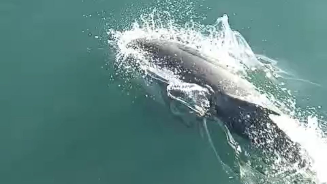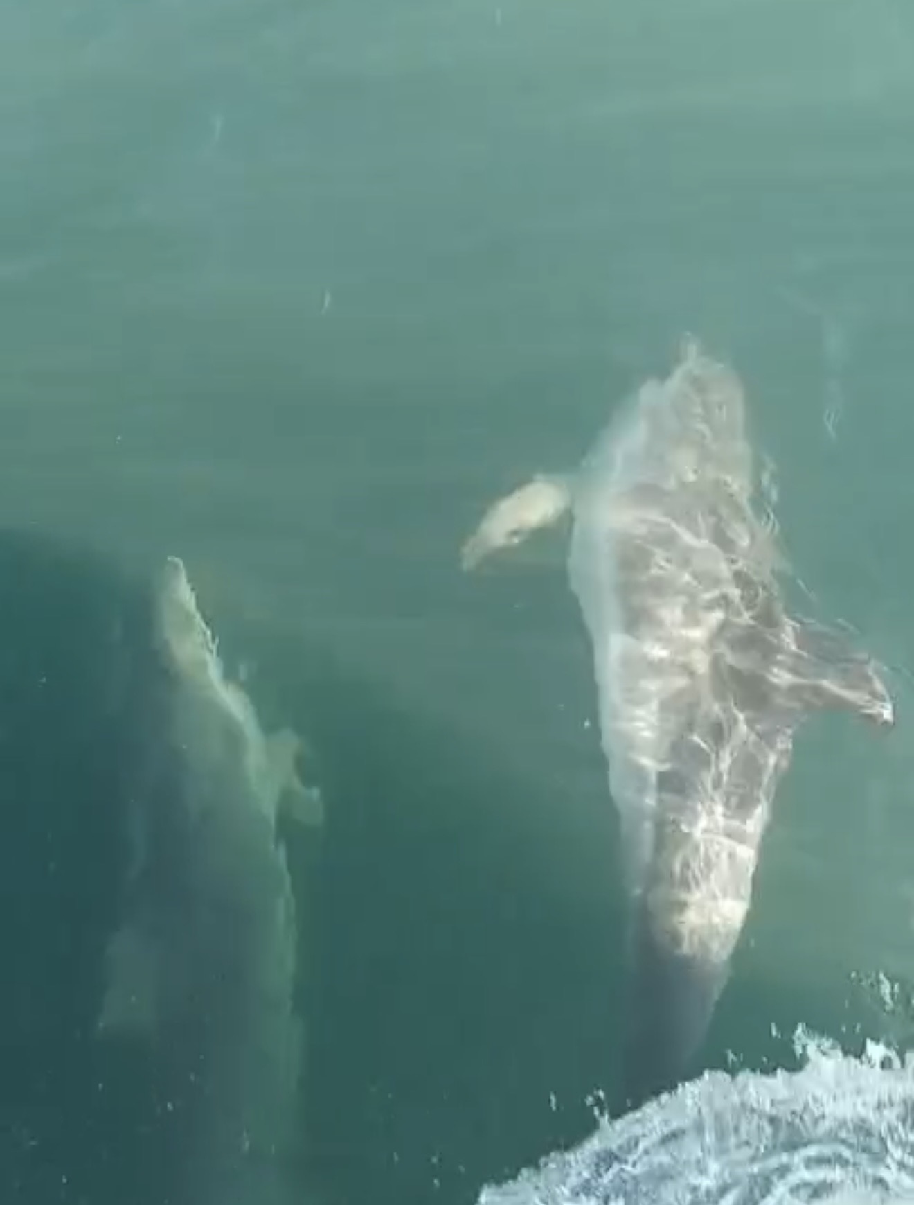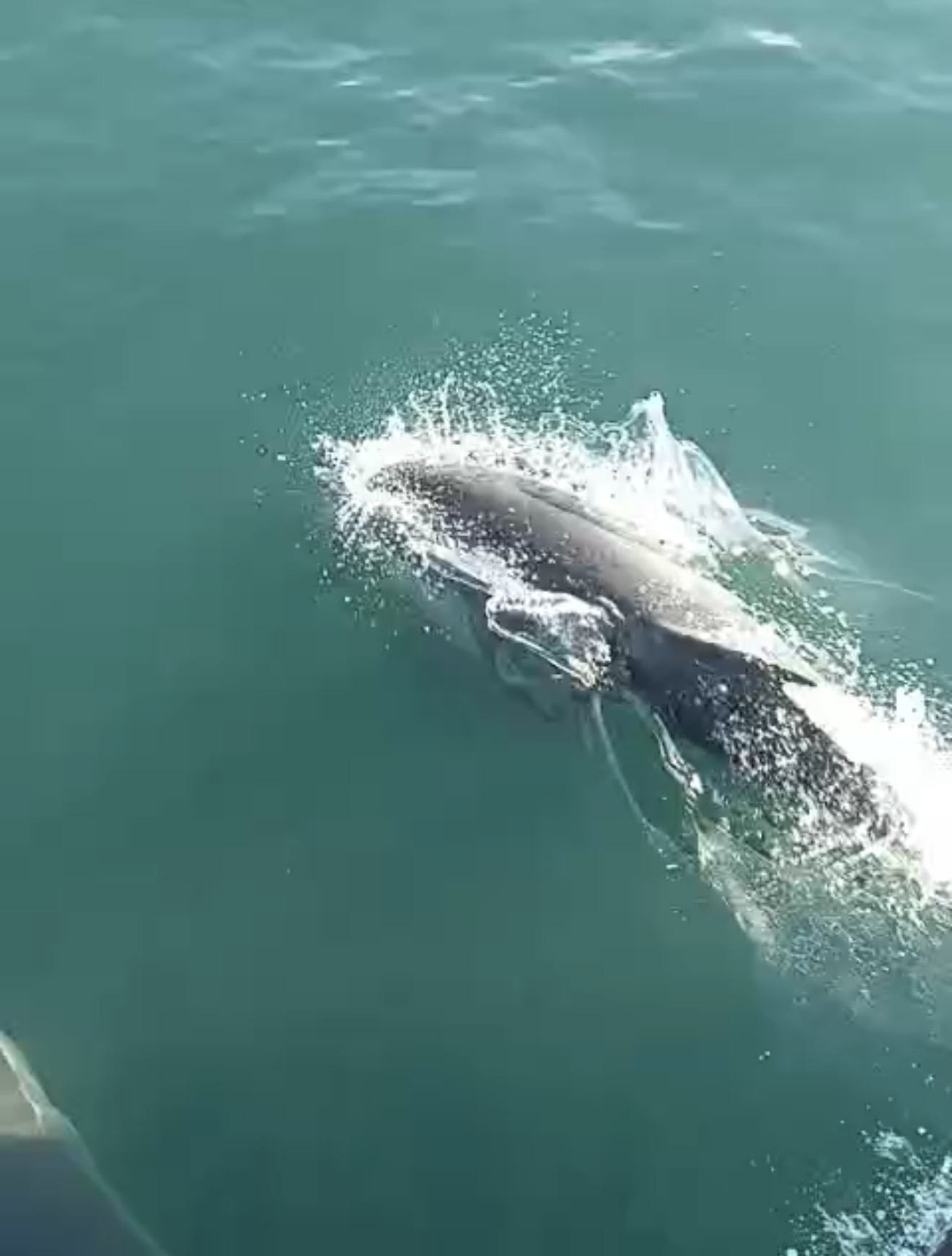 BARTIN'ın Kurucaşile ilçesinde balık tutmak için denize açılan Onur Conkur (35), cep telefonu kamerasıyla teknesinin yanında yüzen yunusları görüntüledi.