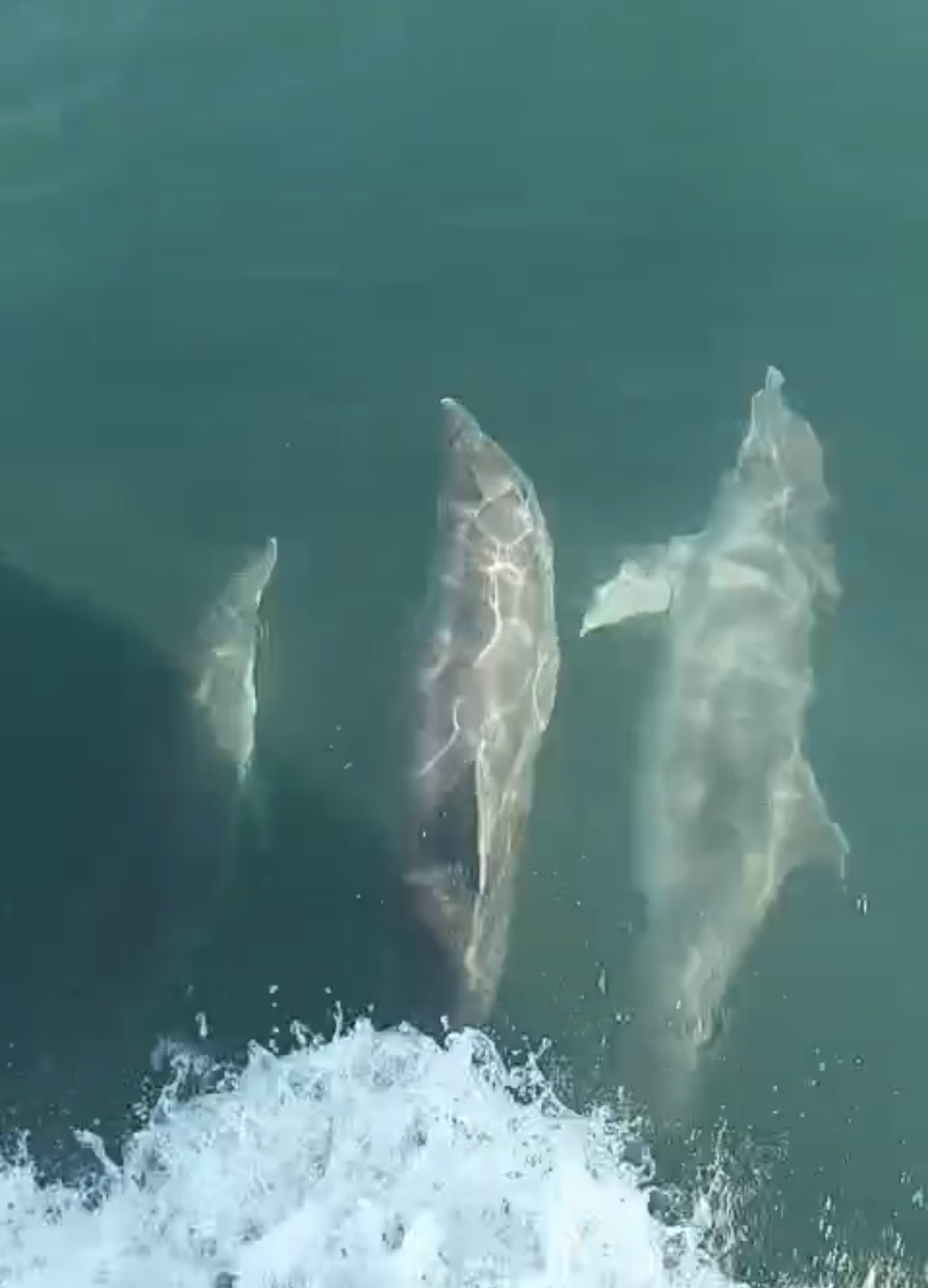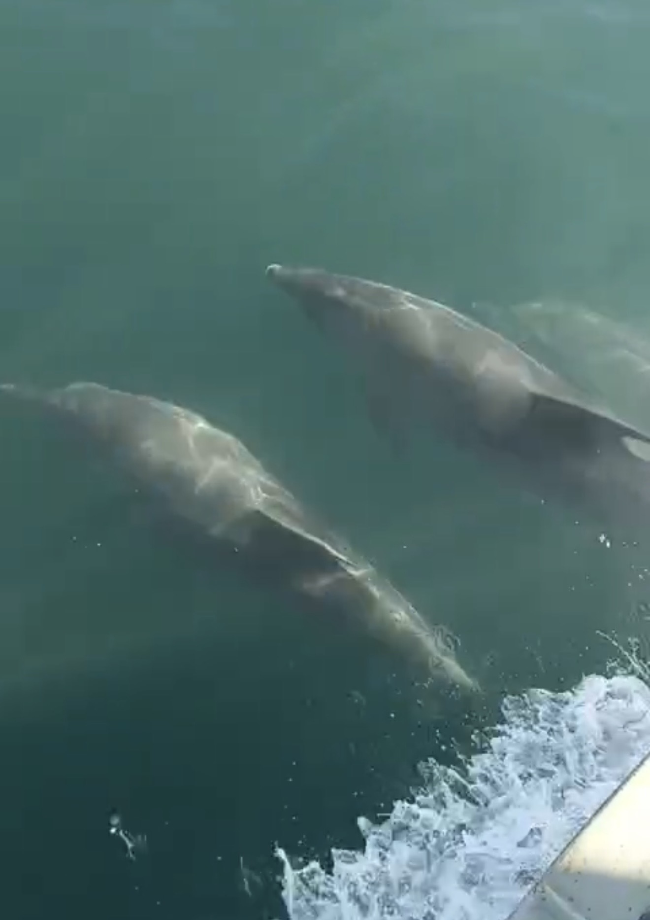 Kurucaşile ilçesi açıklarında dün akşam balık avlamak için 'Deniz Uras' isimli teknesiyle denize açılan Onur Conkur, yaklaşık 300 metre açıkta 3 yunusla karşılaştı. Teknenin yanında yüzmeye başlayan yunuslar, güzel görüntüler oluşturdu. Bir süre tekne ile birlikte suda ilerleyen yunuslar, daha sonra gözden kayboldu. Conkur, o anları cep telefonu kamerasıyla kaydetti.