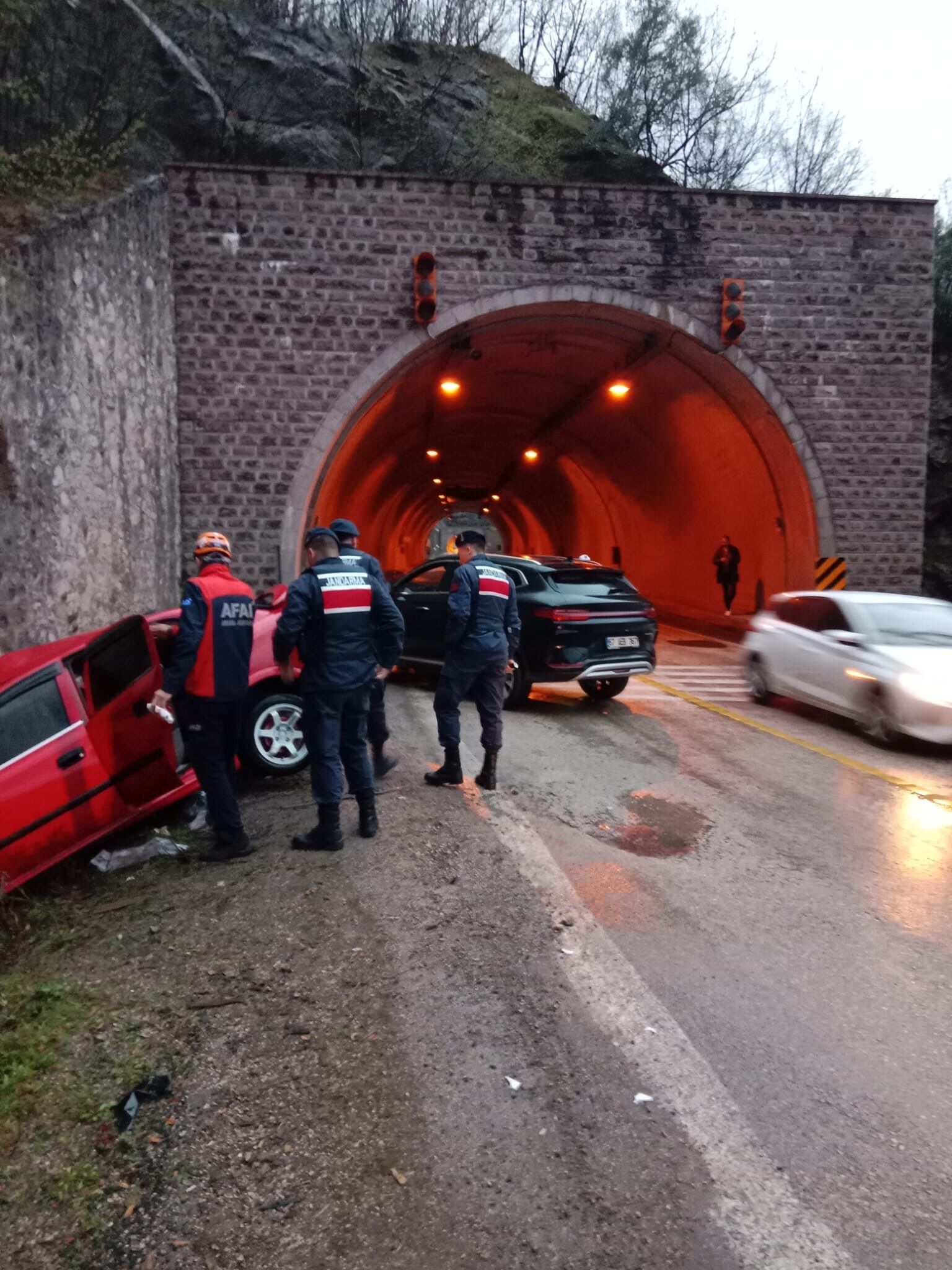 İhbar üzerine bölgeye sağlık, jandarma ve AFAD ekipleri sevk edildi. Kazada iki otomobil sürücüsü ile araçlarda bulunan Yağmur A. (26), A.L.A (1), A.B. (39), ve İ.D.B. (1) yaralandı.