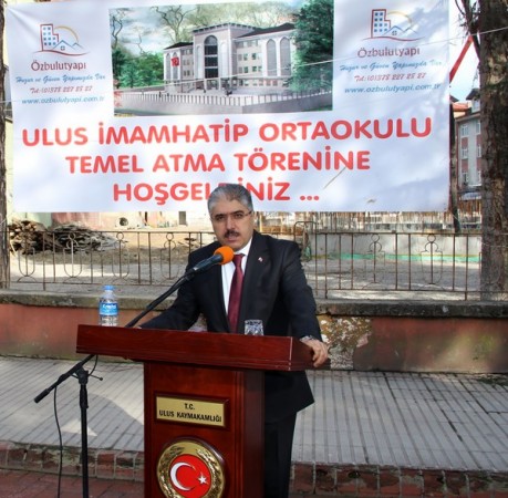Bartın’ın Ulus ilçesinde İmam Hatip Ortaokulu’nun temeli düzenlenen törenle atıldı. Ulusluların yoğun katılımı ile gerçekleşen törene Bartın Valisi Ali Çınar, AK Parti Bartın Milletvekili Yılmaz Tunç, Ulus Kaymakamı Mehmet Haşim Çelik, Amasra Kaymakamı Mehmet Yıldız, Ulus Belediye Başkanı Hüseyin Ulus, İl Özel İdaresi Genel Sekreteri İbrahim Kayış, AK Parti Ulus Belediye Başkan Adayı Hasan Hüseyin Uzun, İl ve İlçe daire müdürleri ve öğrenciler katıldı.