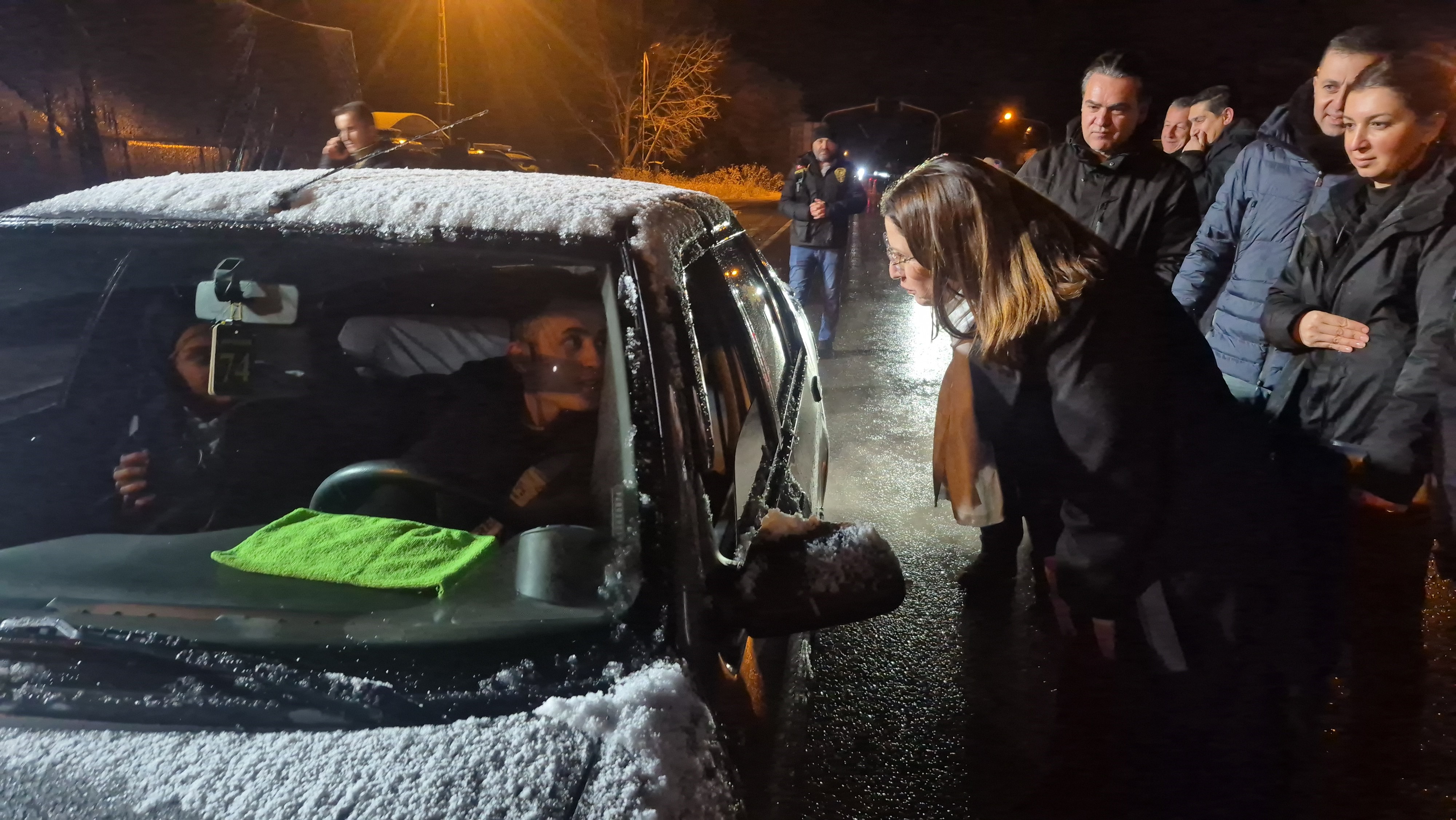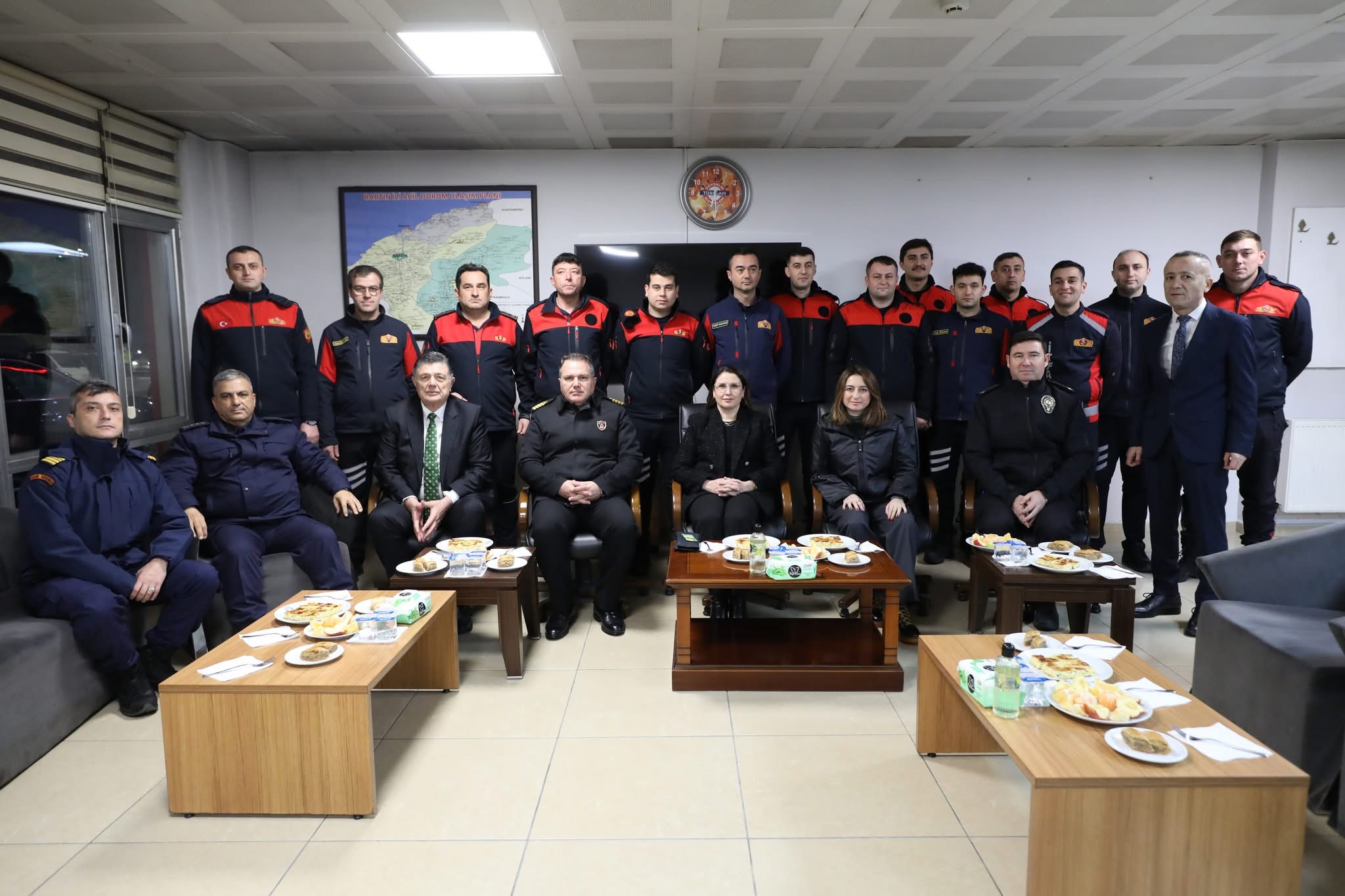 Burada görev yapan jandarma, sahil güvenlik, polis, sağlık ve itfaiye ekipleri ile görüşerek, yeni yılını kutladığı personelden kar yağışındaki son durum ve ihbarlar hakkında bilgi aldı.