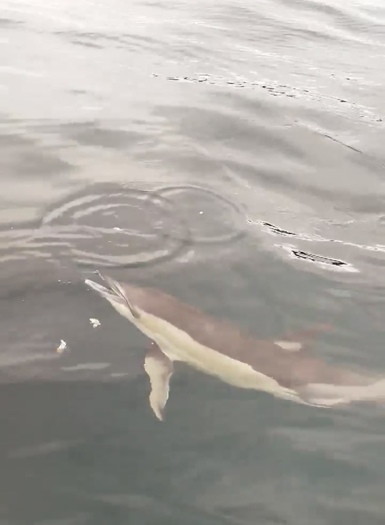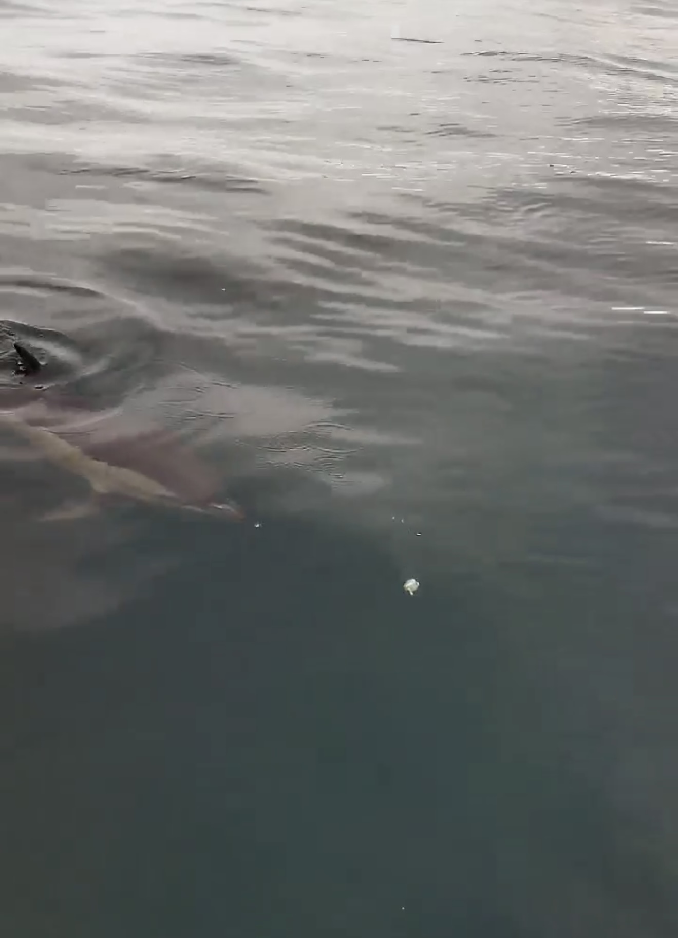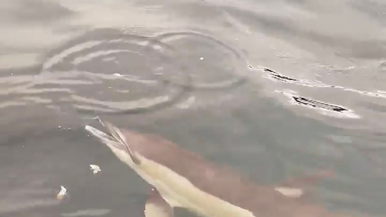 Yaklaşık 10 dakika boyunca ekmek ve domatesle beslenen yunus daha sonra gözden kayboldu.