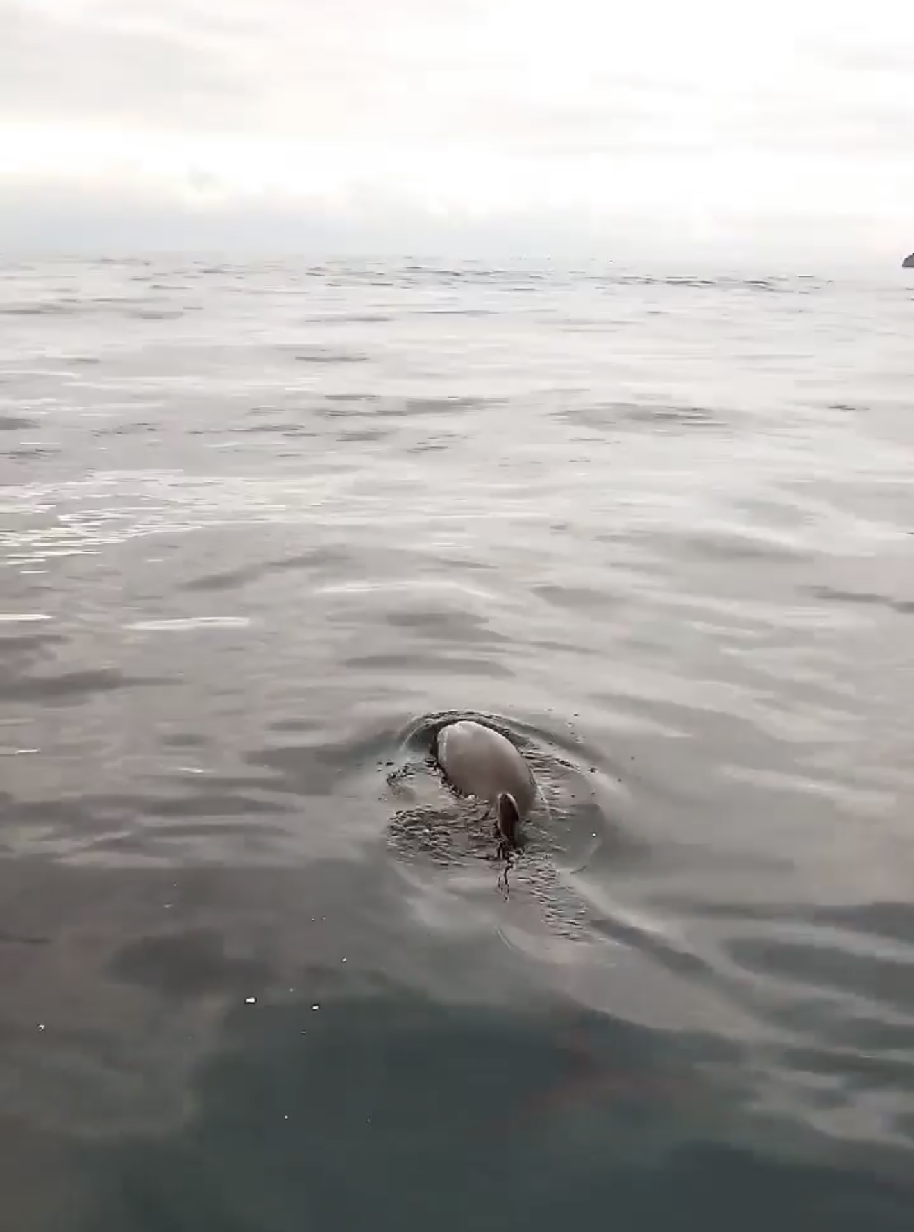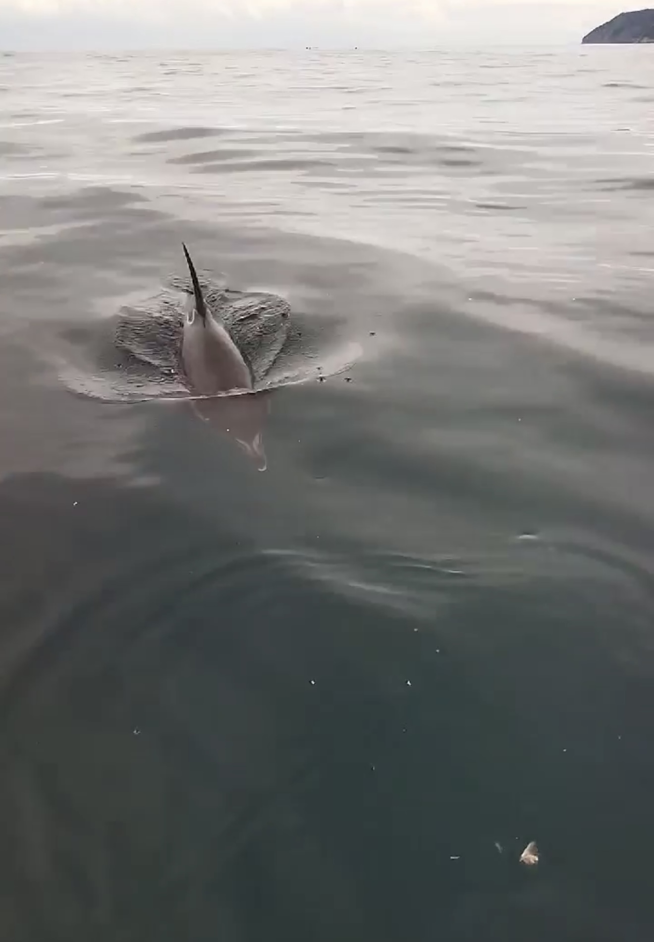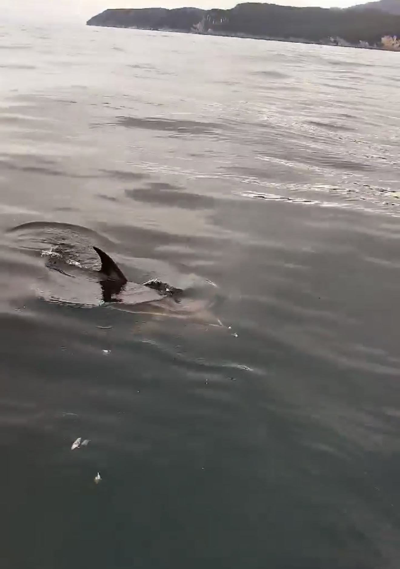 Yaklaşık 10 dakika boyunca ekmek ve domatesle beslenen yunus daha sonra gözden kayboldu.