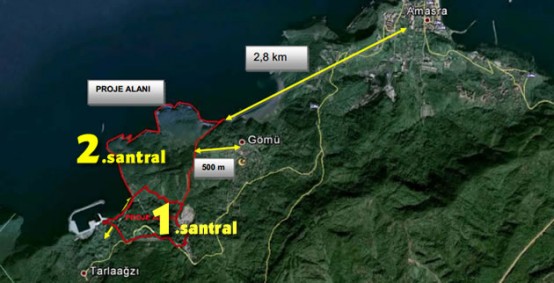 Amasra'ya kurulmak istenen 1. ve 2.termik Santral alanı