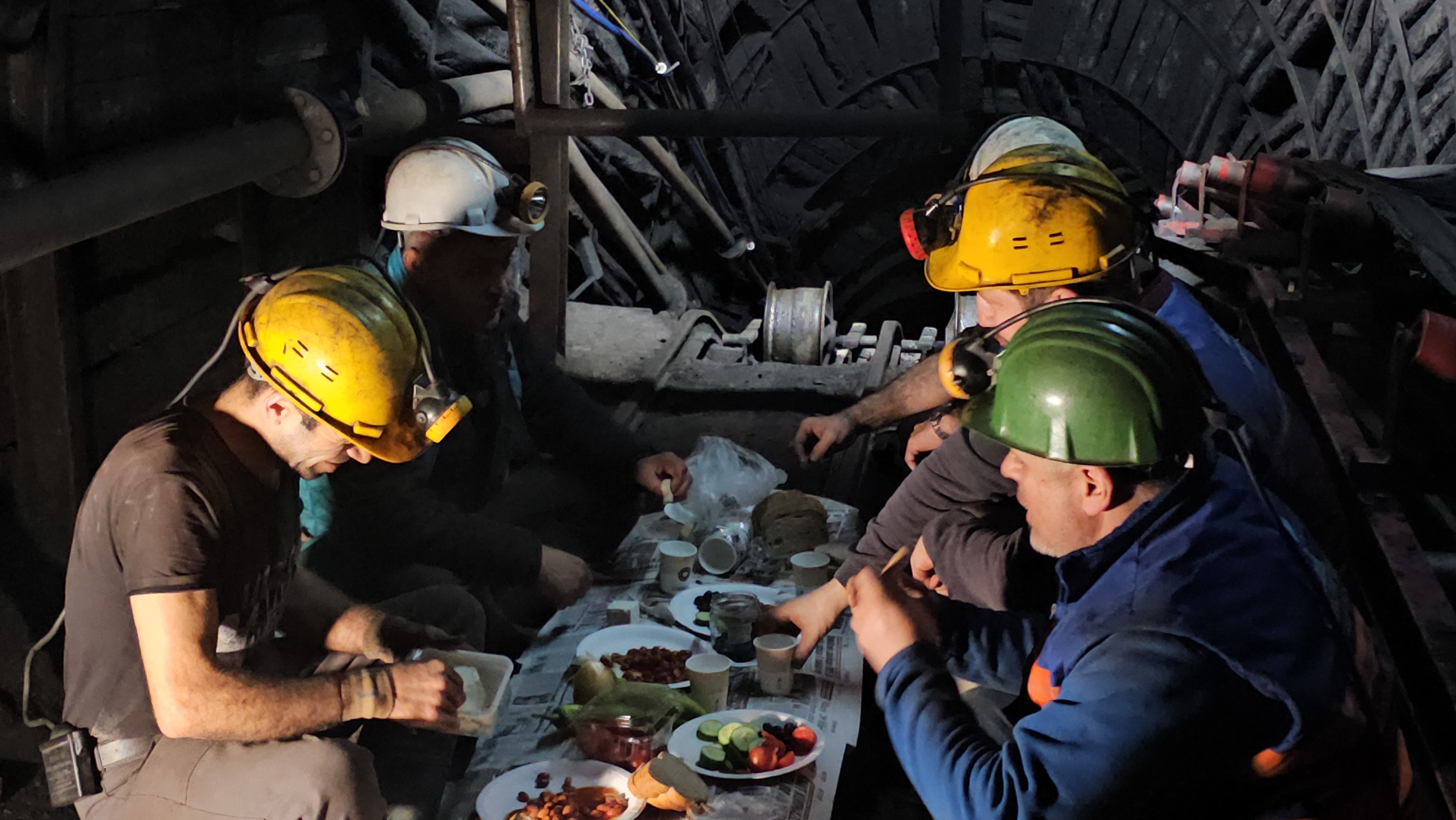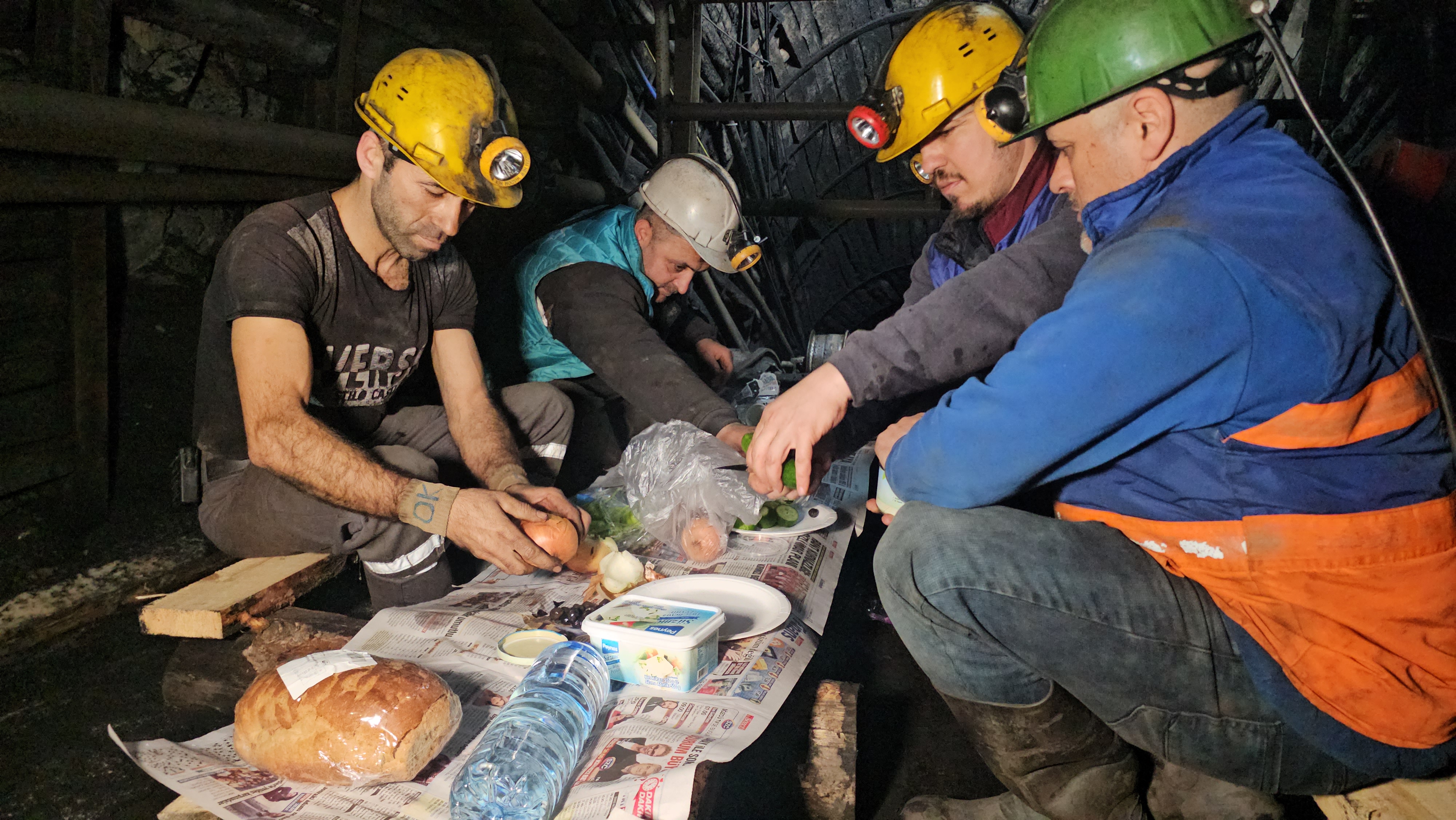 Yerin 120 metre altında, sahur vaktinin gelmesiyle işlerine ara veren maden işçileri, madende tahkimat amacıyla kullanılan ağaçlardan ve tahtalardan yer sofrası kurdu. Evlerinden getirdikleri yiyecekleri kömür karası elleriyle hazırlayan işçiler, birlikte ilk sahurlarını yaptı. İşçiler, sahurun ardından maden şehitleri ve kazasız bir ramazan ayı geçirmek için dua etti. İşçiler sahurun ardından işlerine döndü.