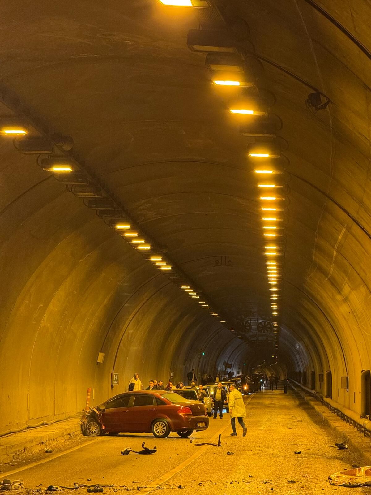 Karabük'te tünel içerisinde iki otomobilin çarpışması sonucu meydana gelen kazada 2'si çocuk 7 kişi yaralandı.