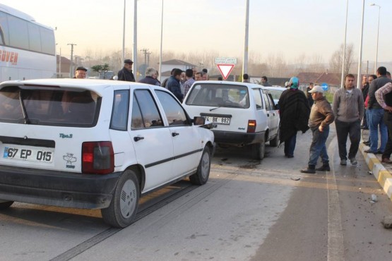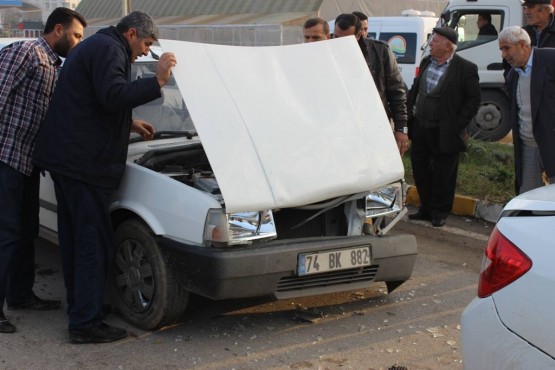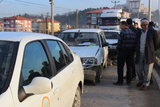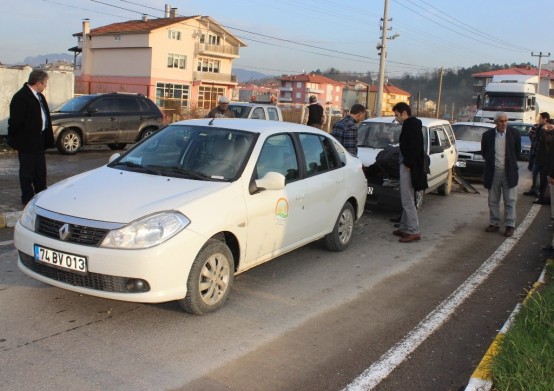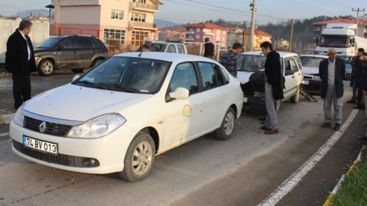 Bartın’da bir kavşakta 3 otomobilin birbirine girmesiyle meydana gelen zincirleme trafik kazası ucuz atlatıldı. Mustafa Kurt / İHA