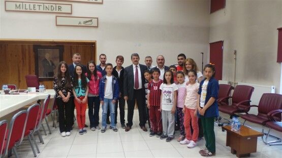 Ortaokullar arası Atletizm Grup Müsabakaları için ilimize gelen Bolu Gençlik Merkezi 10-12 yaş atletizm kafilesi Belediye Başkanı Cemal Akın’ı ziyaret etti.