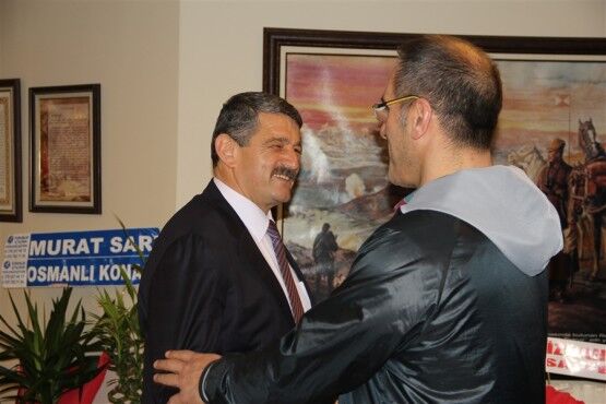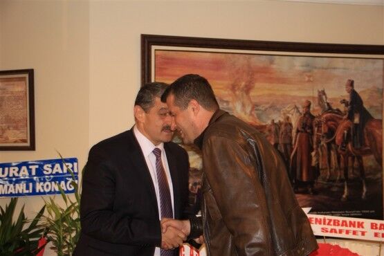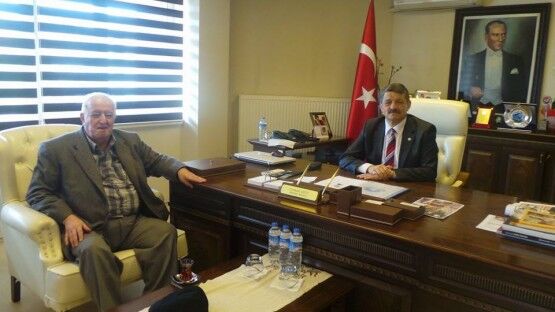 Başkan Akın’ı son olarak kentin tanınmış esnaflarından Ekrem Hezer ile Mustafa Çeçen’de makamında ziyaret ederek hayırlı olsun dileklerini ilettiler.
