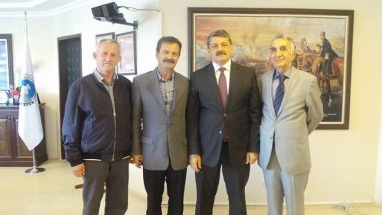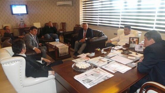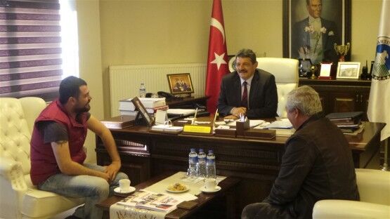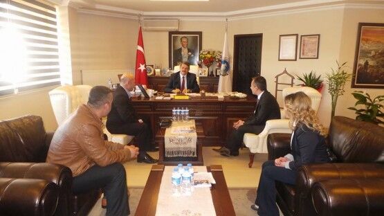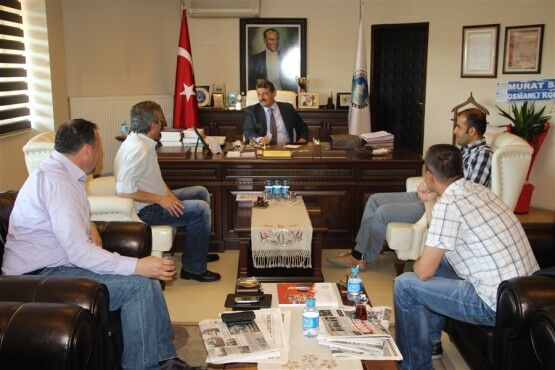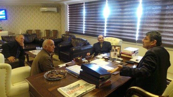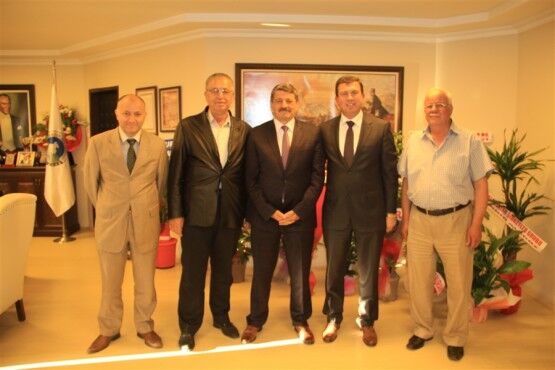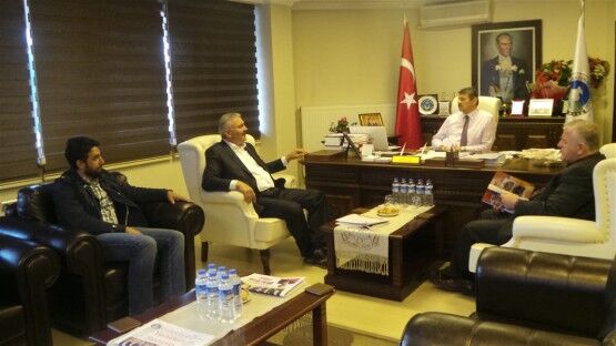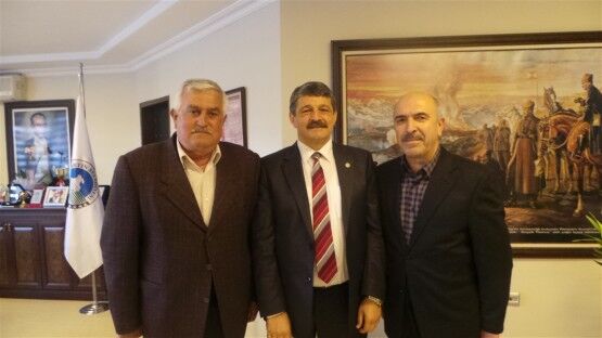 Pinaldi Tekstil Fabrikası Yöneticileri Ramazan Taş ve Şükrü Taş ile Özemniyet Firması sahibi Nedim Güneş Belediye Başkanı Cemal Akın’ı ziyaret ettiler.