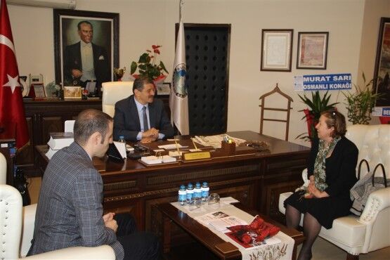 Hergün Gazetesi İmtiyaz Sahibi Nihal Çınçın’la personeli Belediye Başkanı Cemal Akın’ı makamında ziyaret etii