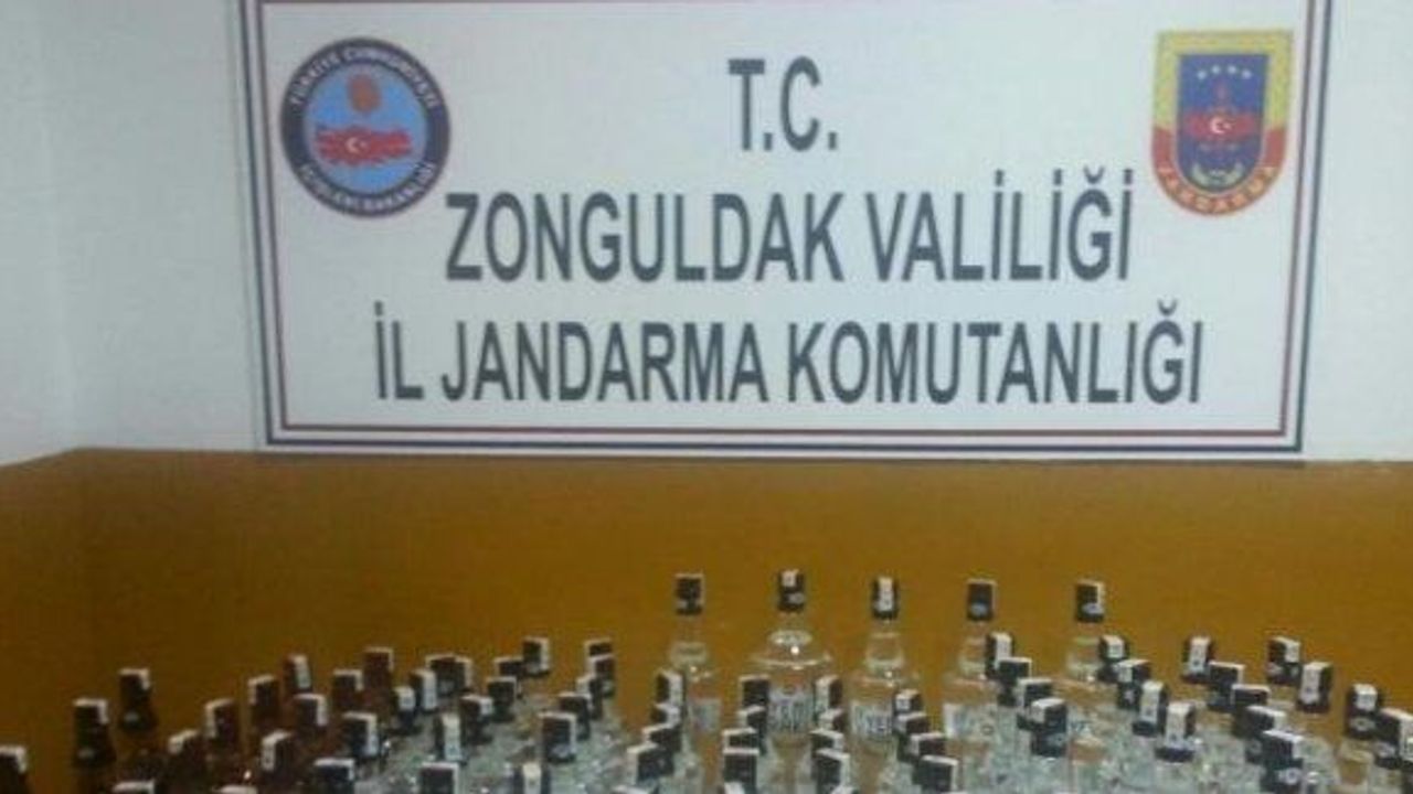 Markette yapılan aramada faturası olmayan sahte bandrollü 15'i viski, 62'si rakı toplam 77 şişe kaçak içki ele geçirildi.