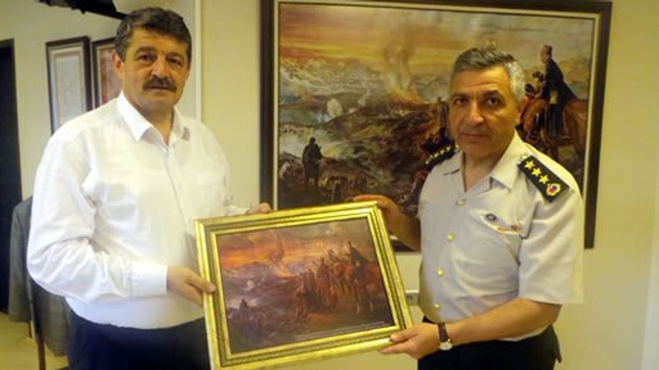 Mardin’e tayin olan Jandarma Komutanı Alaattin Karsavuran Belediye Başkanı Cemal Akın’a veda ziyaretinde bulundu. Makam odasında gerçekleşen ziyarette Belediye Başkan Yardımcısı Hüseyin Çetin’de hazır bulundu. Belediye Başkanı Cemal Akın ziyaret dolayısıyla duyduğu memnuniyeti ifade ederek başladığı konuşmasında Karsavuran’a yeni görev yerinde başarılar diledi. Akın konuşmasında “Nazik ziyaretinizle bizleri onurlandırdınız. Memleketimizde bu güne kadar verdiğiniz hizmetler dolayısıyla teşekkür ederim. Yeni görev yerinizde başarılar diliyorum” dedi. Başkan Akın ziyaret sonunda Komutan Karsavuran’a Kurtuluş Savaşı konulu Sururi tablosu ve belediye kültür yayını olan Kurtuluş Savaşı’nda Bartın isimli kitabı hediye etti.