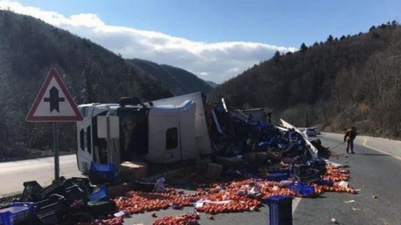 Kaza ardından TIR'ın dorsesinde bulunan meyve ve sebzelerle kasalar yola saçıldı. Kaza nedeniyle ulaşım bir süre kontrollü olarak tek şeritten sağlandı. TIR sürücüsünün sağlık durumunun iyi olduğu ifadeedilirken soruşturma başlatıldı.