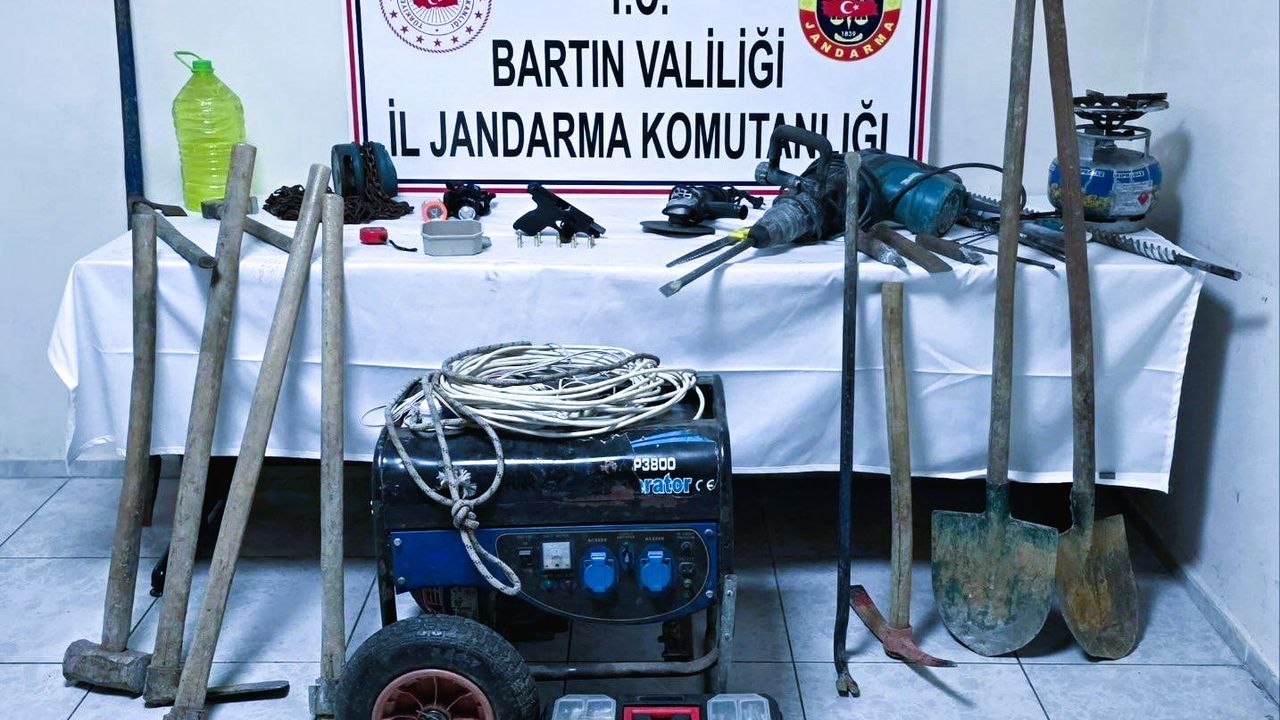 Bartın'da kaçak kazı yaptığı tespit edilen 2 şahıs suçüstü yakalandı.