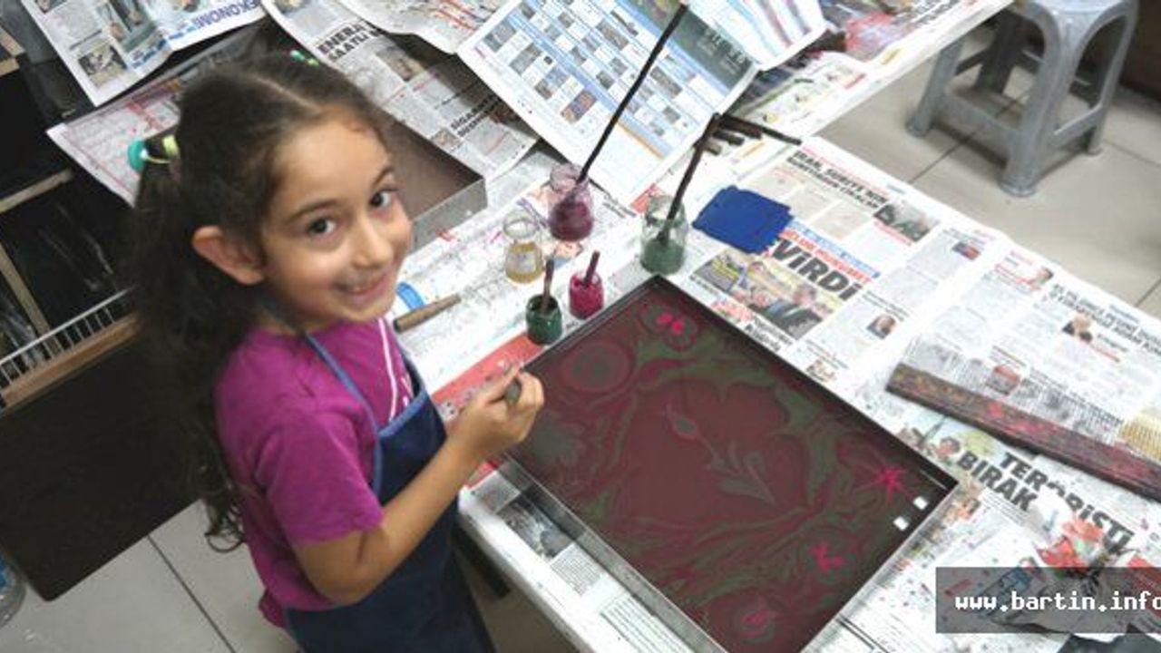 Bartın'da Sanat Atölyeleri kurslarından Ebru Sanatı Kursu büyük ilgi görüyor.