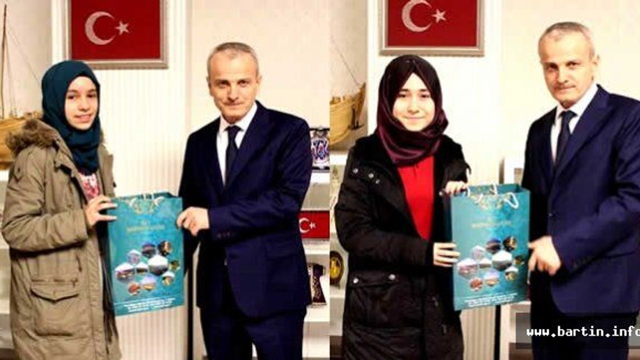Vali DİRİM, ziyaret sonunda şampiyon öğrencilerimizden Sümeyra ŞENGÜL ile Selin Zeynep ÖZÇELİK’i ödüllendirdi.