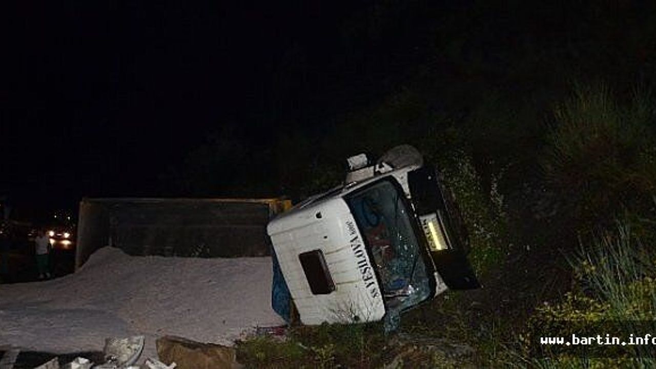 Kaza, saat 00.15 sıralarında Alaplı karayolunda meydana geldi. Yağmur nedeniyle toprağın yumuşaması sonucu yamaçtan kopan kaya parçaları yola düştü. Akçakoca yönüne giden Hasan Civelek yönetimindeki 81 AC 197 plakalı TIR, önüne düşen kaya parçasına çarparak devrildi. Kaya parçasının çarptığı TIR’da hasar meydana gelirken, yaşanan olayda herhangi bir can kaybı yaşanmadı. Kazandan yara almadan kurtulan araç sürücüsü araçtan kendi imkanlarıyla çıktı. TIR sürücü Hasan Çivelek, "Frene basmaya fırsat bulamadım ve taşa vurunca arabayı devirdik" şeklinde konuştu.
