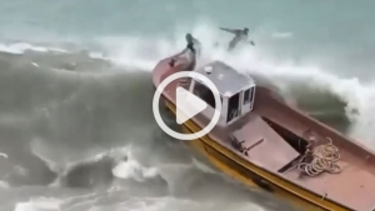 Kastamonu'nun Bozkurt ilçesinde botla teknesini kurtarmak isteyen 2 balıkçı denize düştü. O anlar saniye saniye görüntülendi.