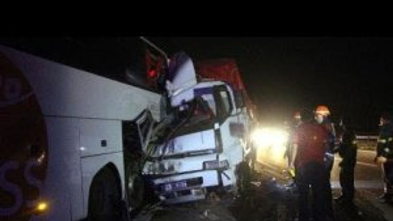 Arıza yapan yolcu otobüsüne kamyon çarptı: 1 ölü, 4 yaralı