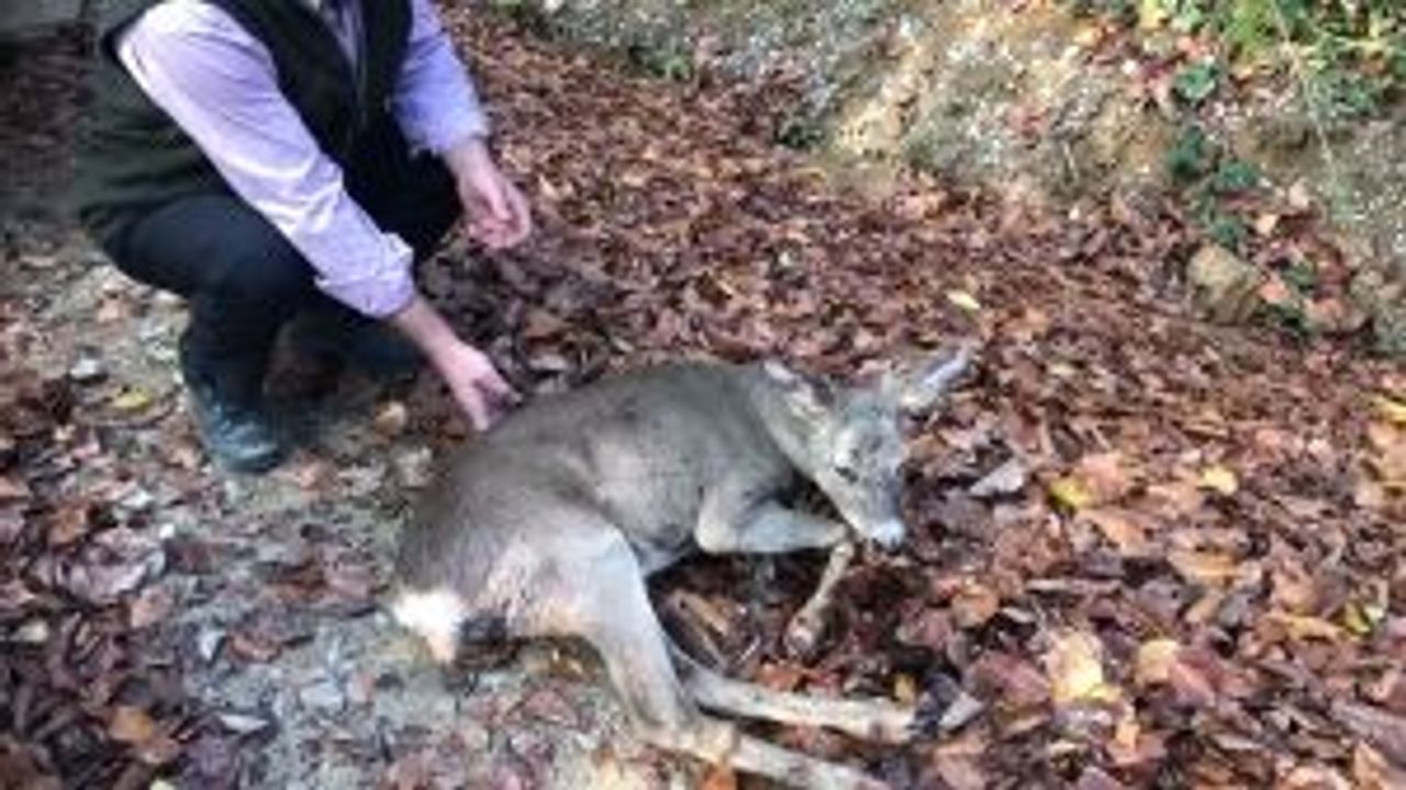 BARTIN'da avcıların vurduğu karaca, veteriner hekim tarafından tedavisinin yapılmasının ardından doğaya salındı.