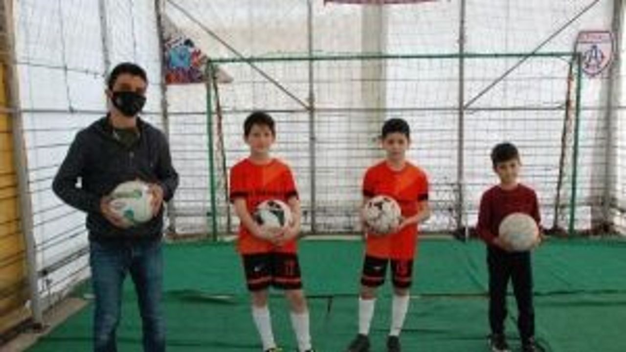 BARTIN’da, 2 çocuk babası İsa Fındık (36), pandemi döneminde futbol okuluna gidemeyen oğlu Burak (11) için evinin yanındaki garajın üzerine mini halı saha yaptı. Burak burada arkadaşlarıyla top oynuyor.