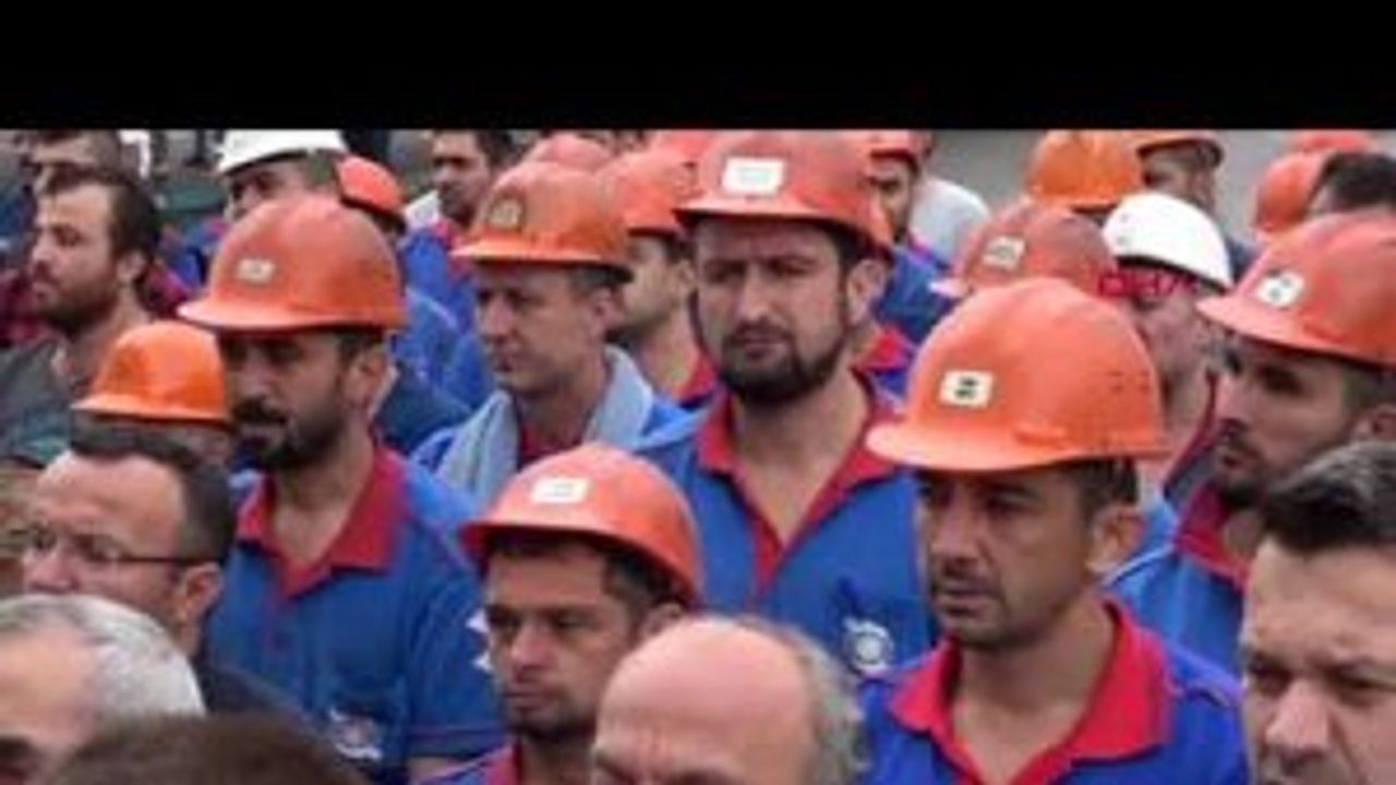 KARABÜK Demir ve Çelik Fabrikaları'nda (Kardemir) elektrik akımına kapılarak yaşamını yitiren Halil Kuzören (49) için fabrikada cenaze namazı kılındı. Çelik işçileri, arkadaşlarının cenaze namazına yetişmek için koştu.