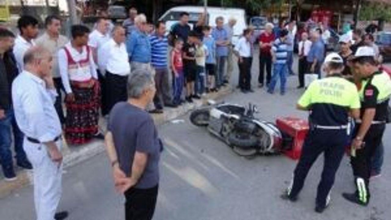 Kavşakta otomobile çarpan motosiklet sürücüsü yaralandı