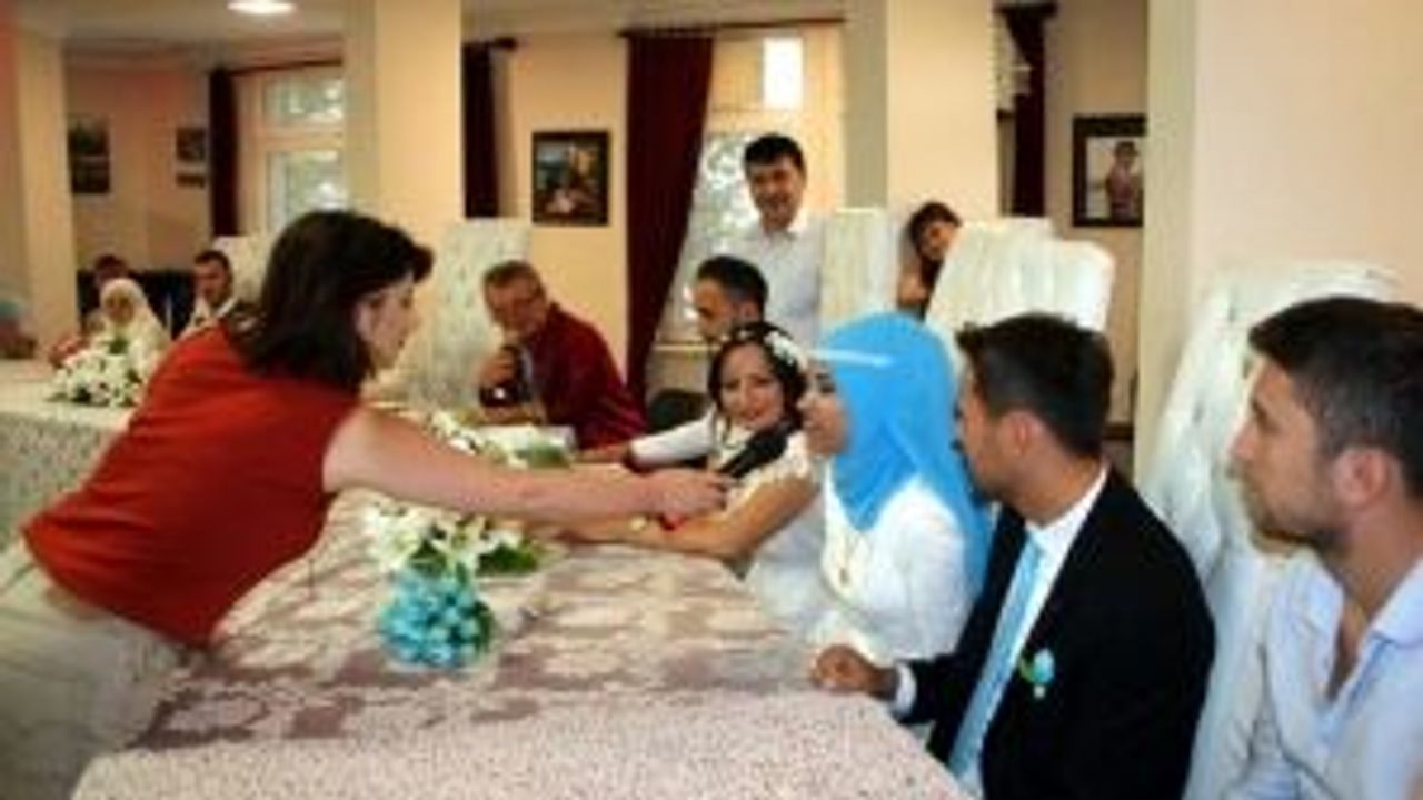 Çaycuma Belediyesi Evlendirme Dairesi'ne başvuran 4 çift evlilik tarihlerini özel kılmak için 08.08....