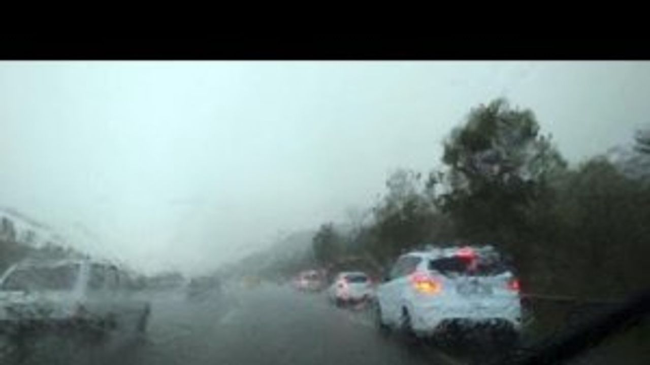 Yağmur ve doluda, araçlar emniyet şeridinde bekledi